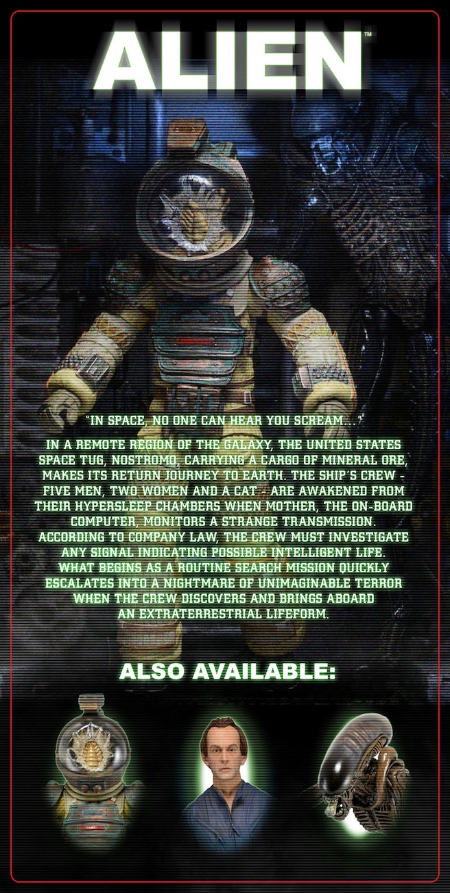 From 1979’s Alien, Kane in Nostromo Spacesuit is fully articulated and comes in special 35th Anniversary packaging. For all the details on Series 3, check out the product page: