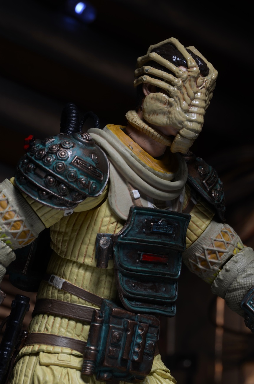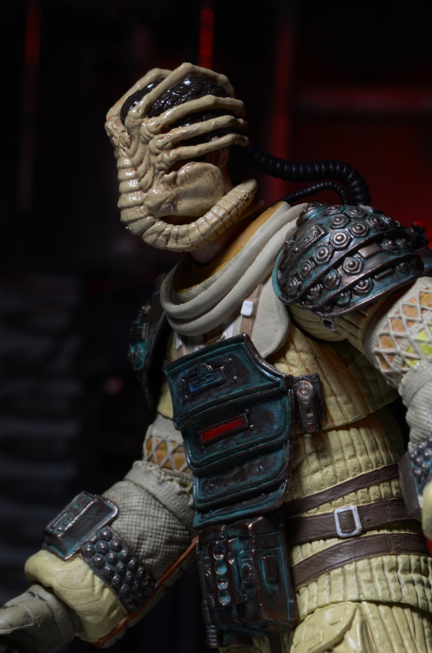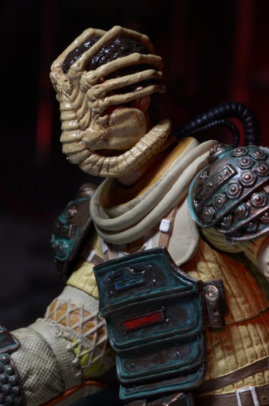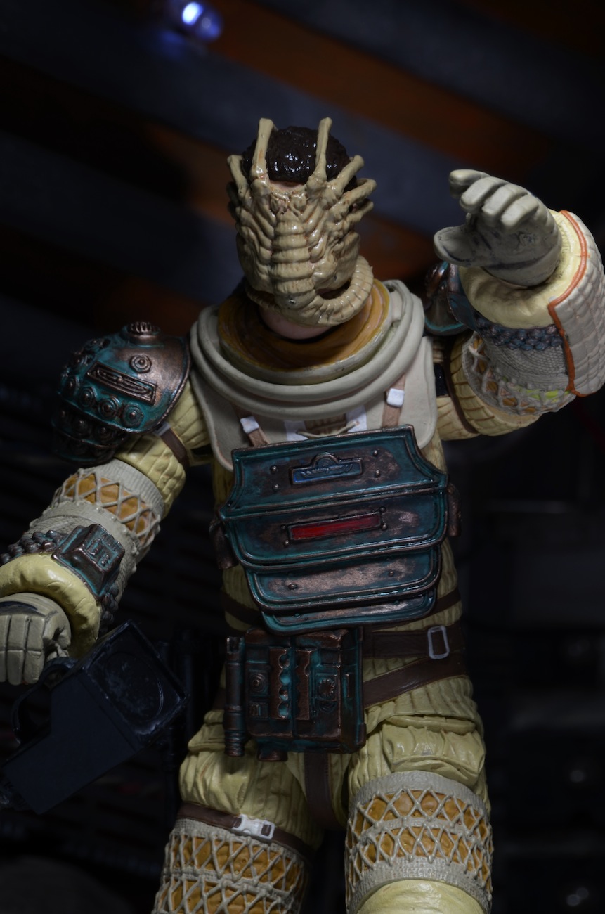 Every Facehugger Friday is a little spooky, but this one is extra chilling! These close-up shots capture Series 3’s Kane as he attempts to reason with the little Alien that’s just melted through his helmet and is giving his face a friendly hug.