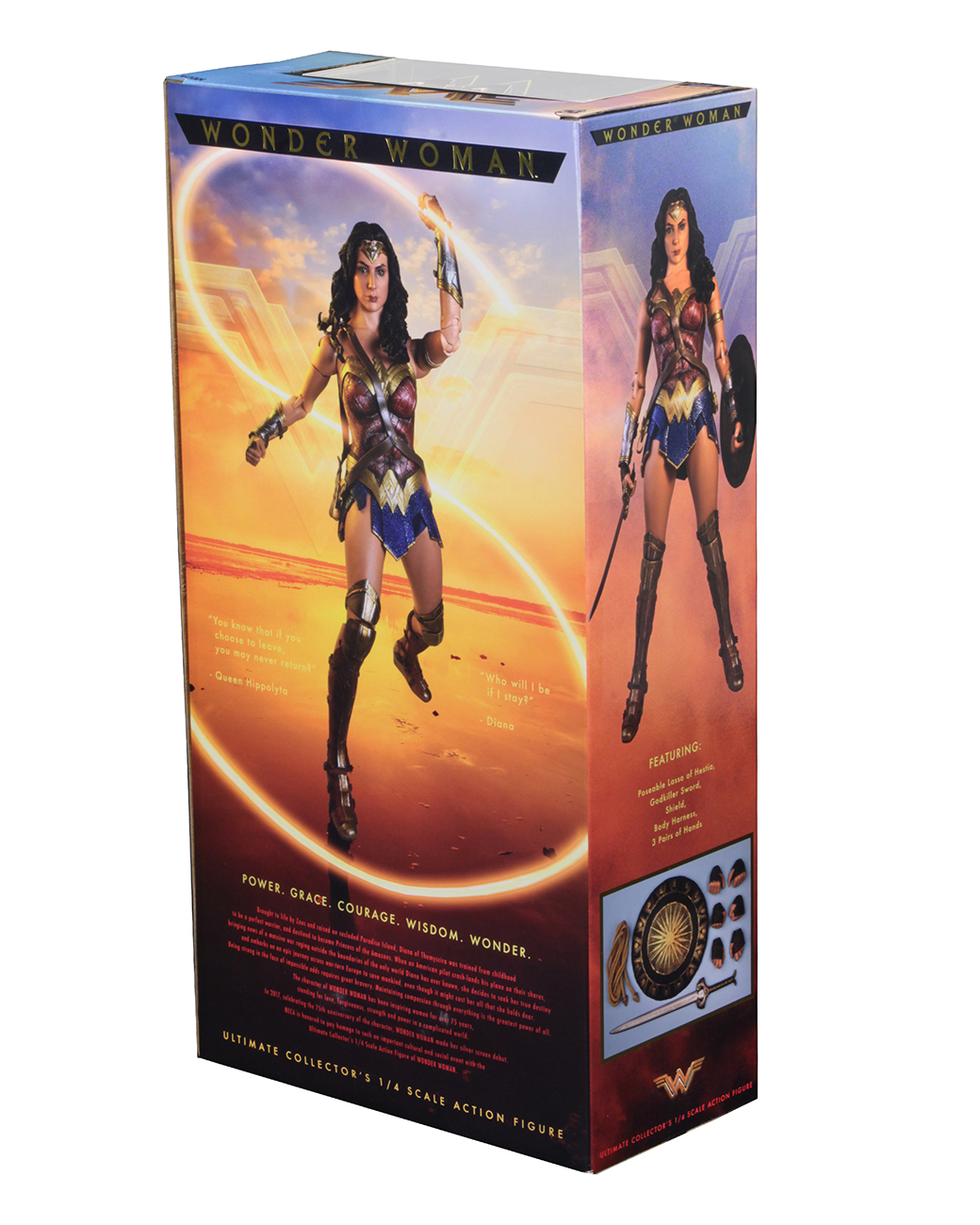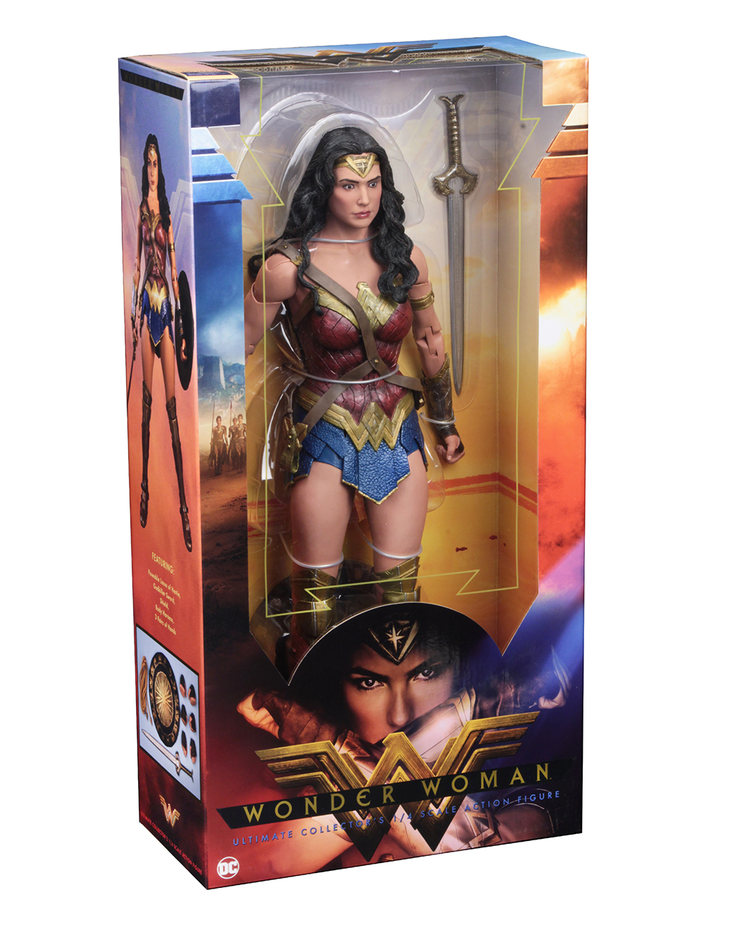 This detailed 1/4 scale action figure is based on Wonder Woman’s look in the new movie and has 30 points of articulation for heroic poses. She stands 18” tall and features the likeness of Gal Gadot.