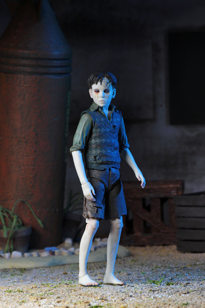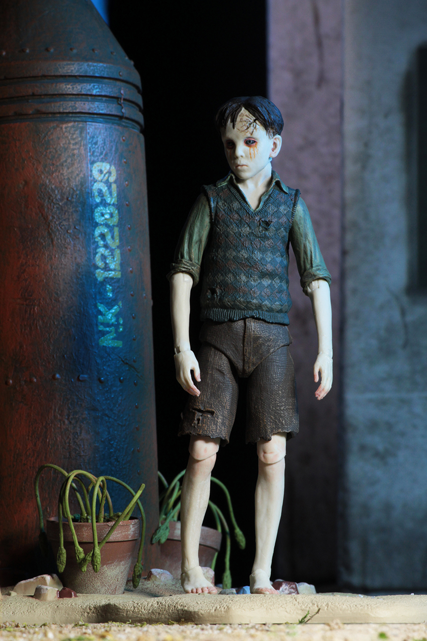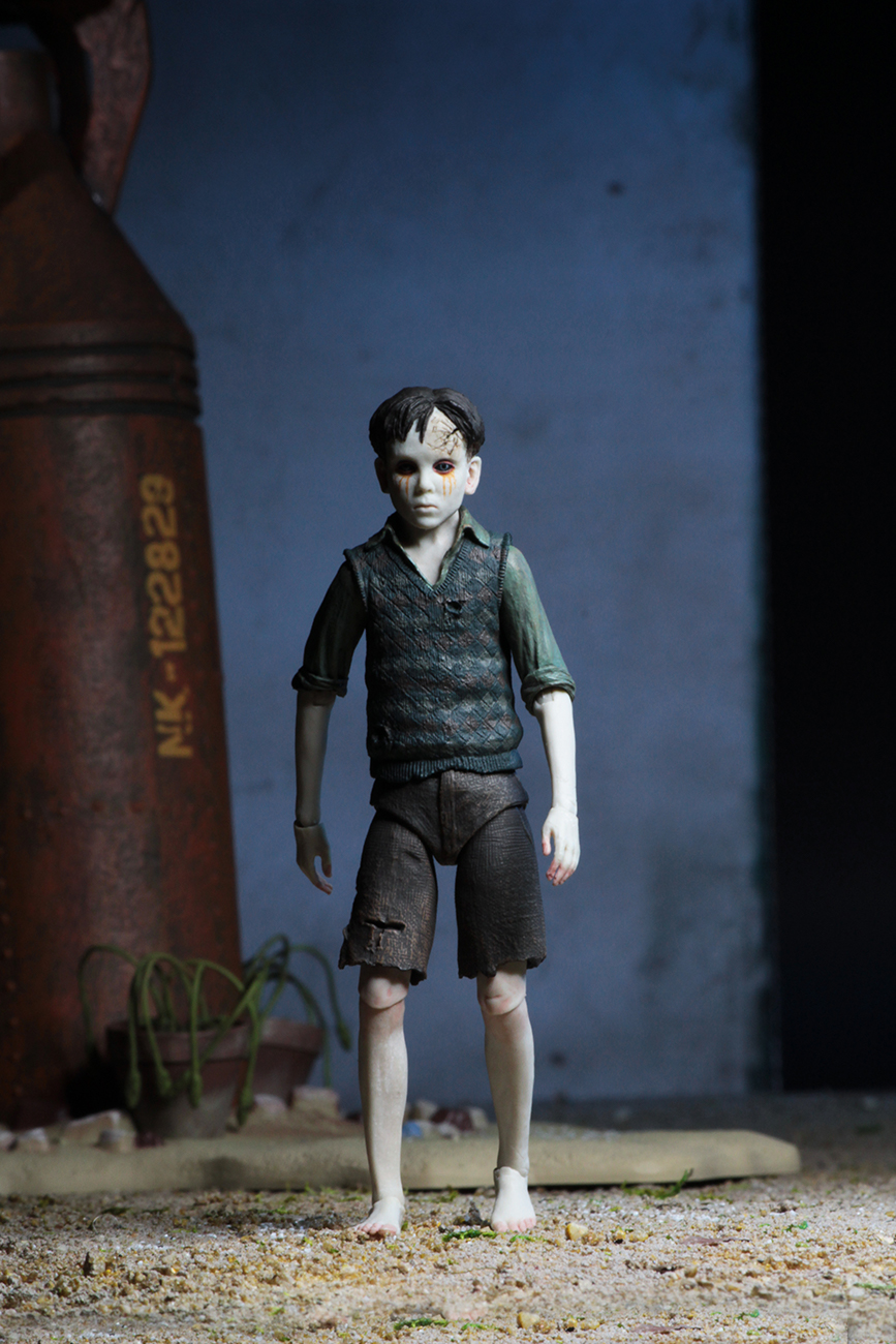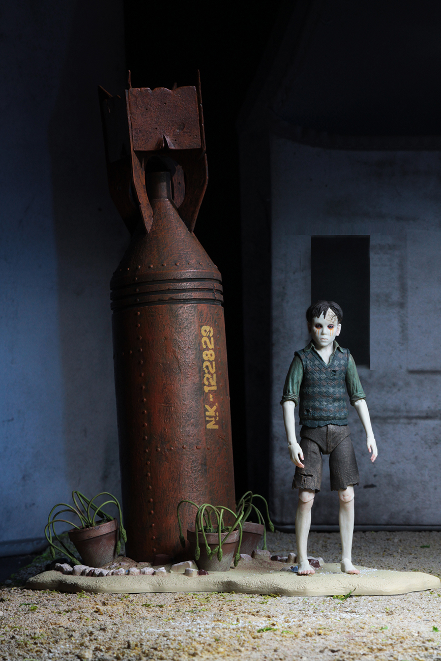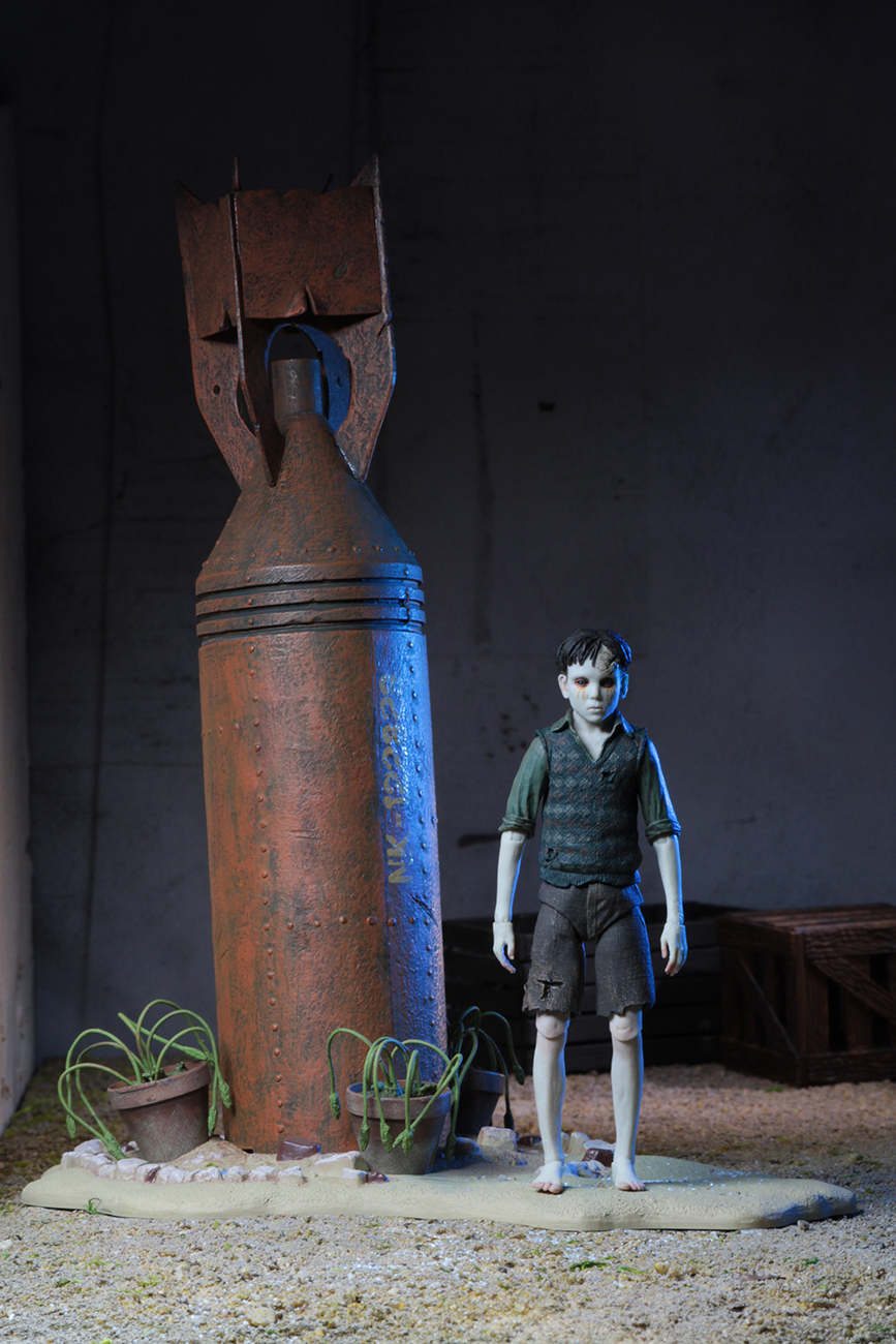 The first release in the collection is Santi, from the haunting film The Devil’s Backbone. “The one who sighs” is super-poseable and comes with a detailed diorama base featuring the bomb that falls into the courtyard of his orphanage.