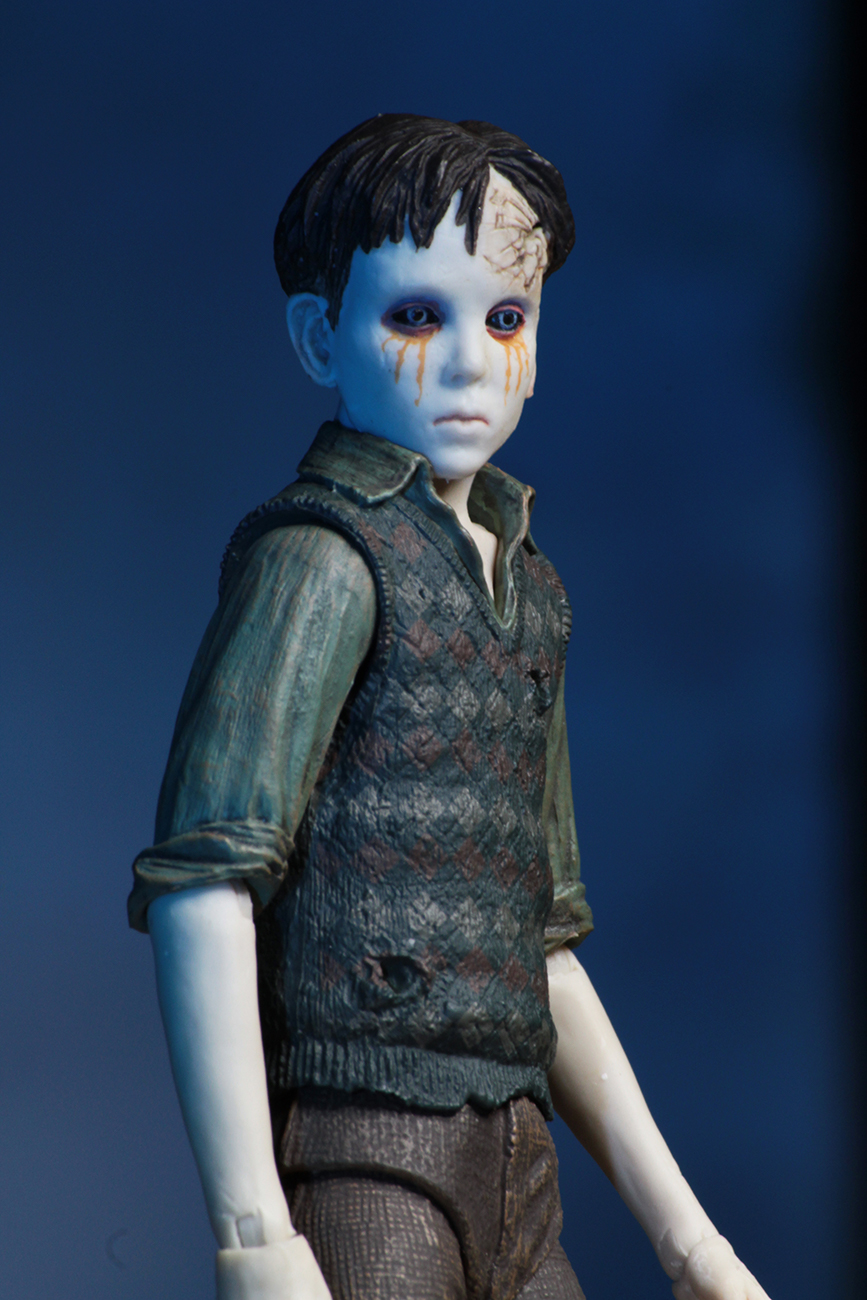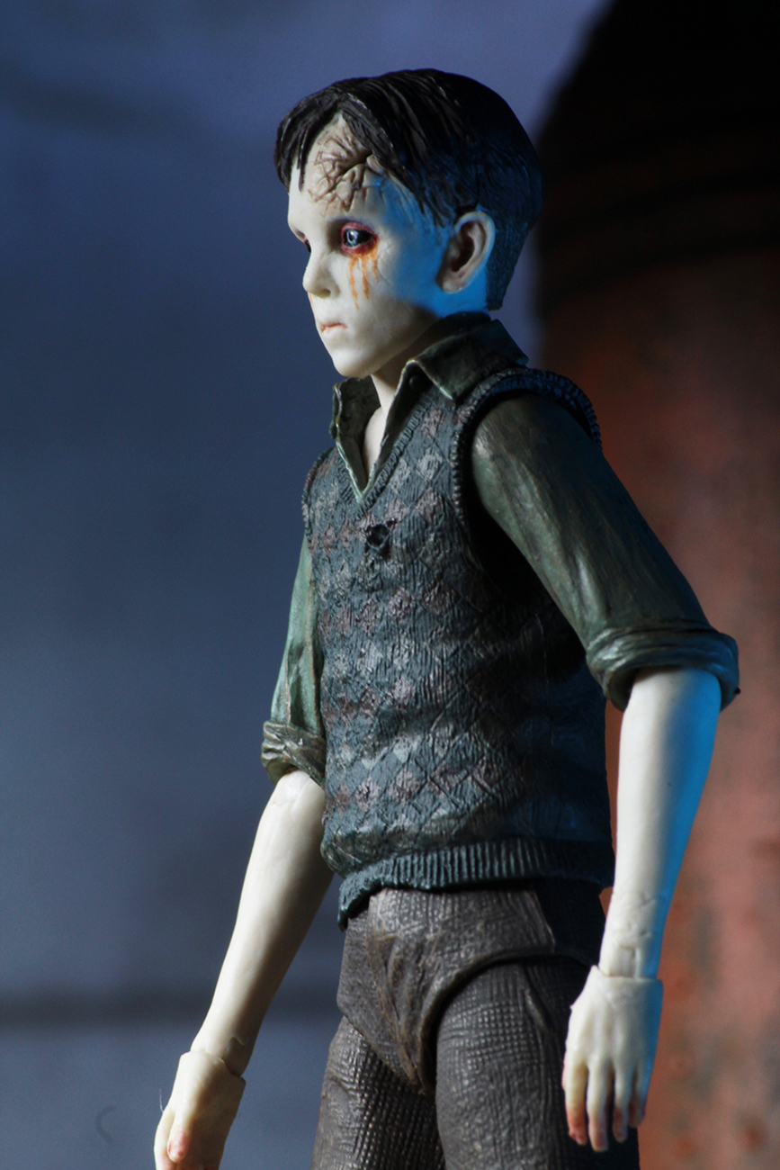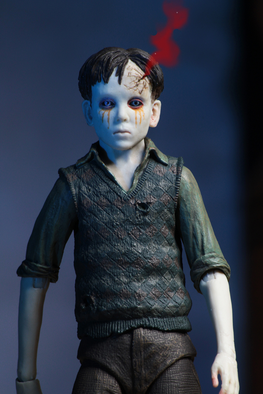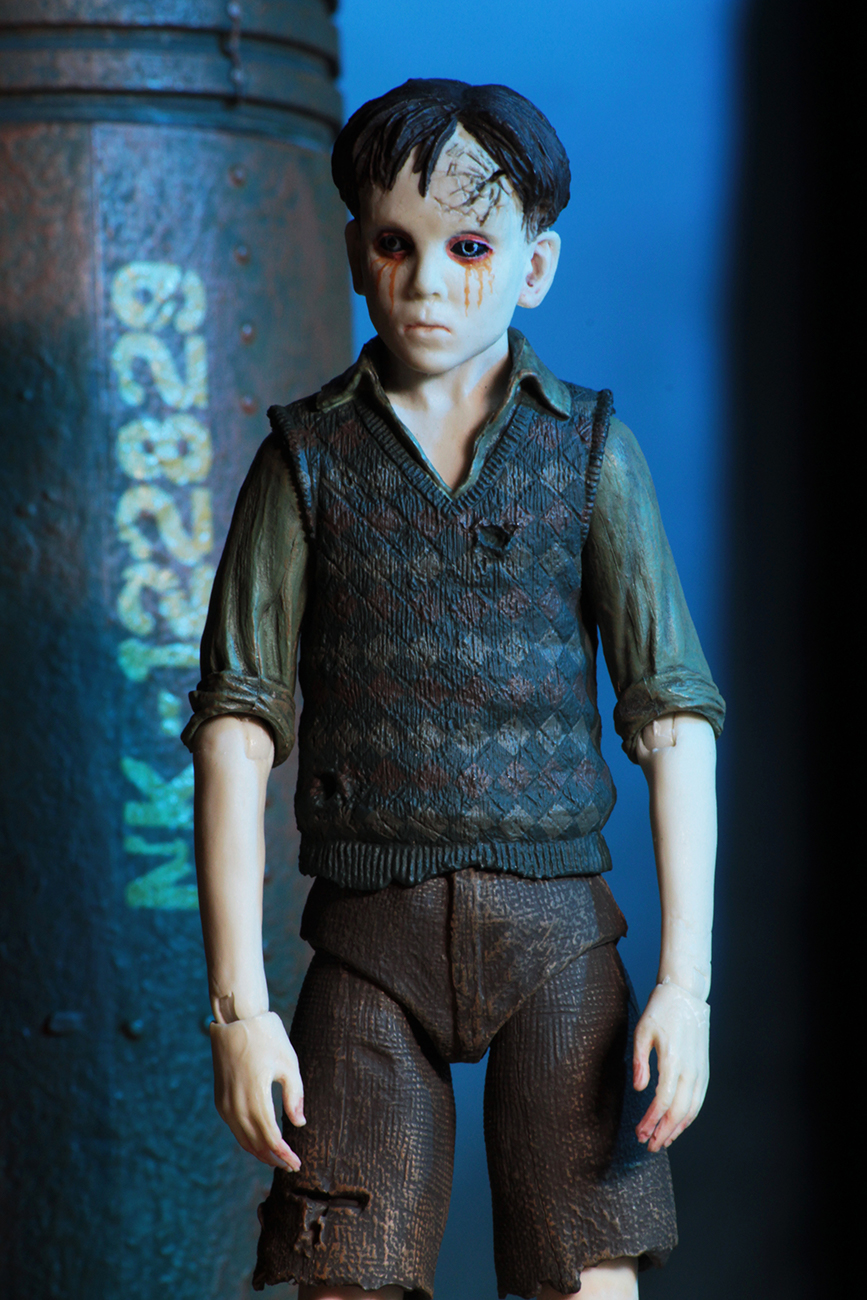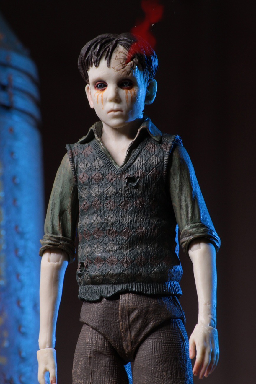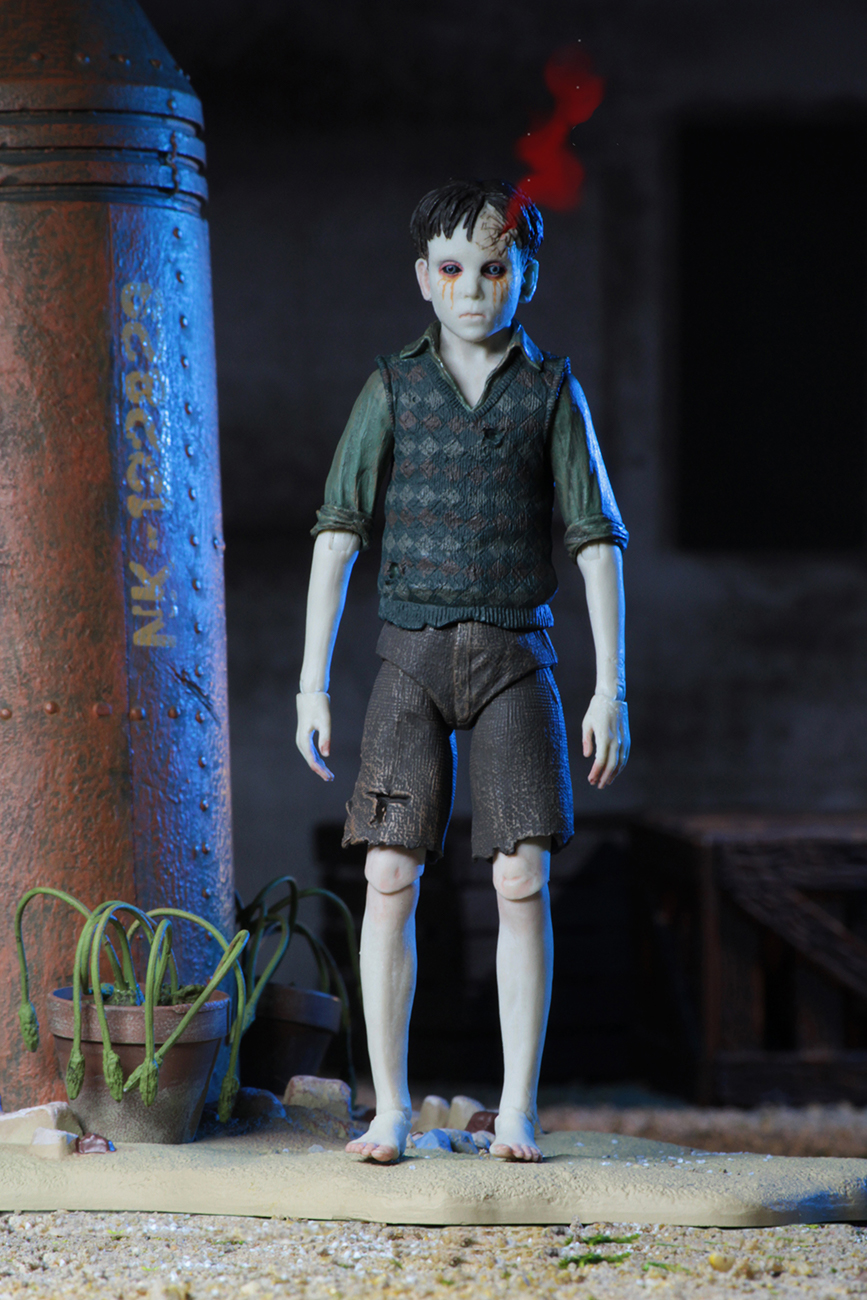 The first release in the collection is Santi, from the haunting film The Devil’s Backbone. “The one who sighs” is super-poseable and comes with a detailed diorama base featuring the bomb that falls into the courtyard of his orphanage.
