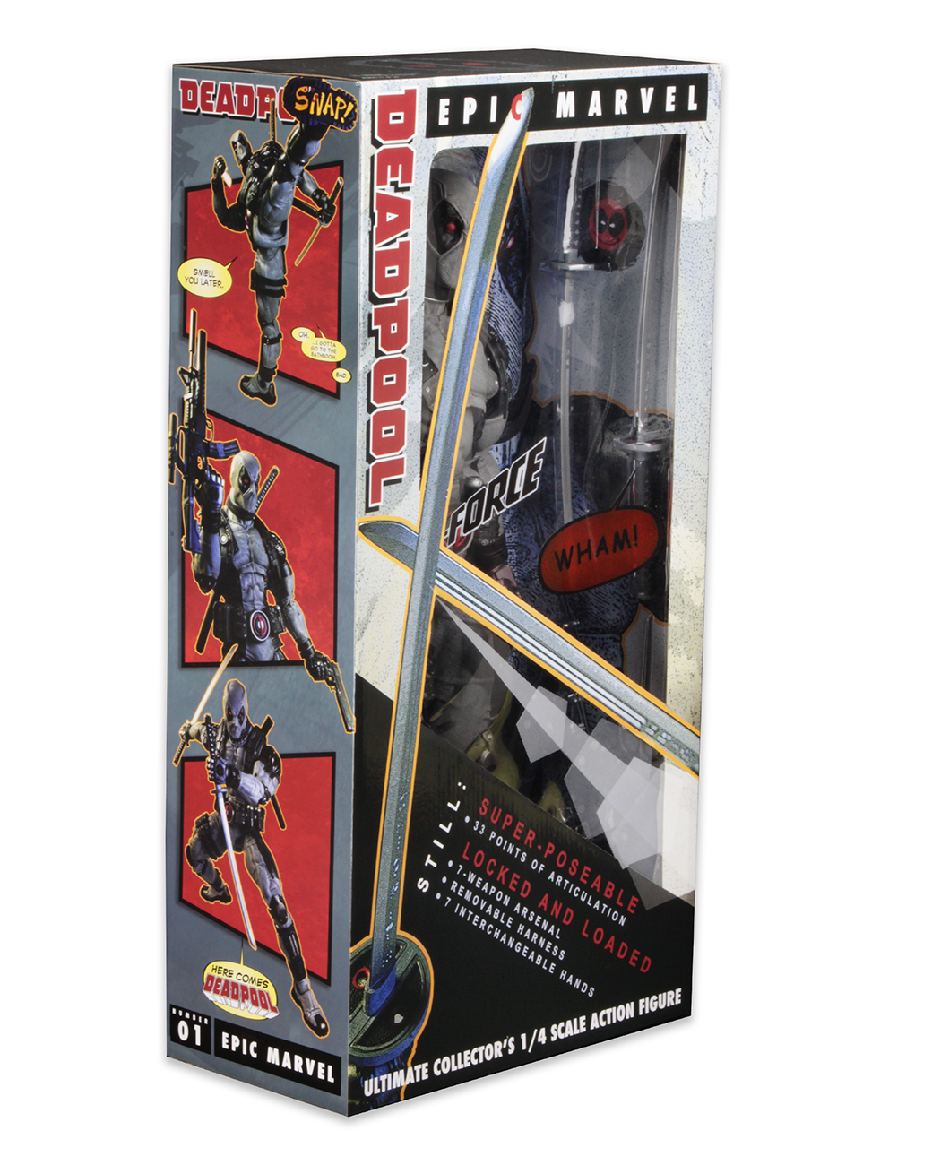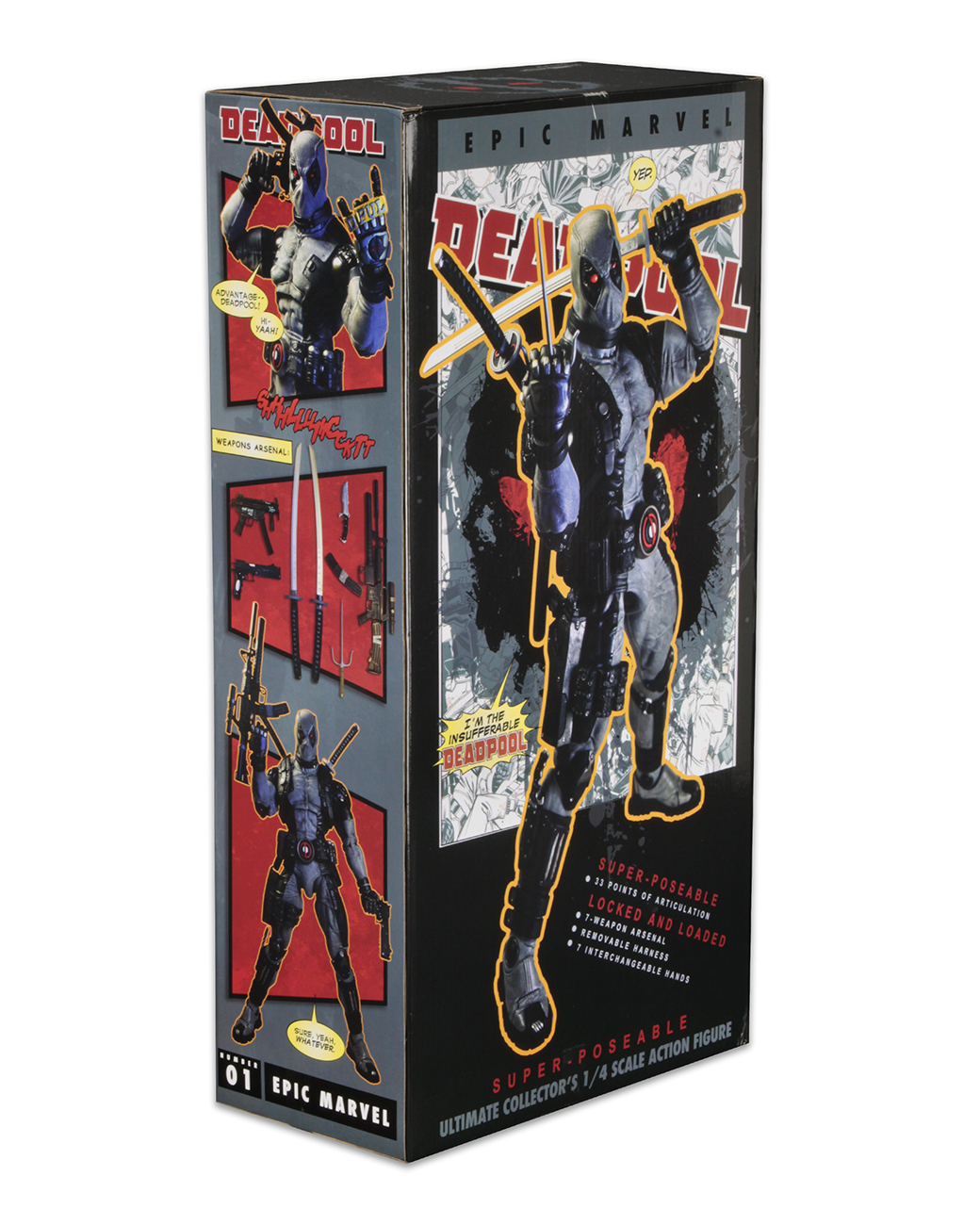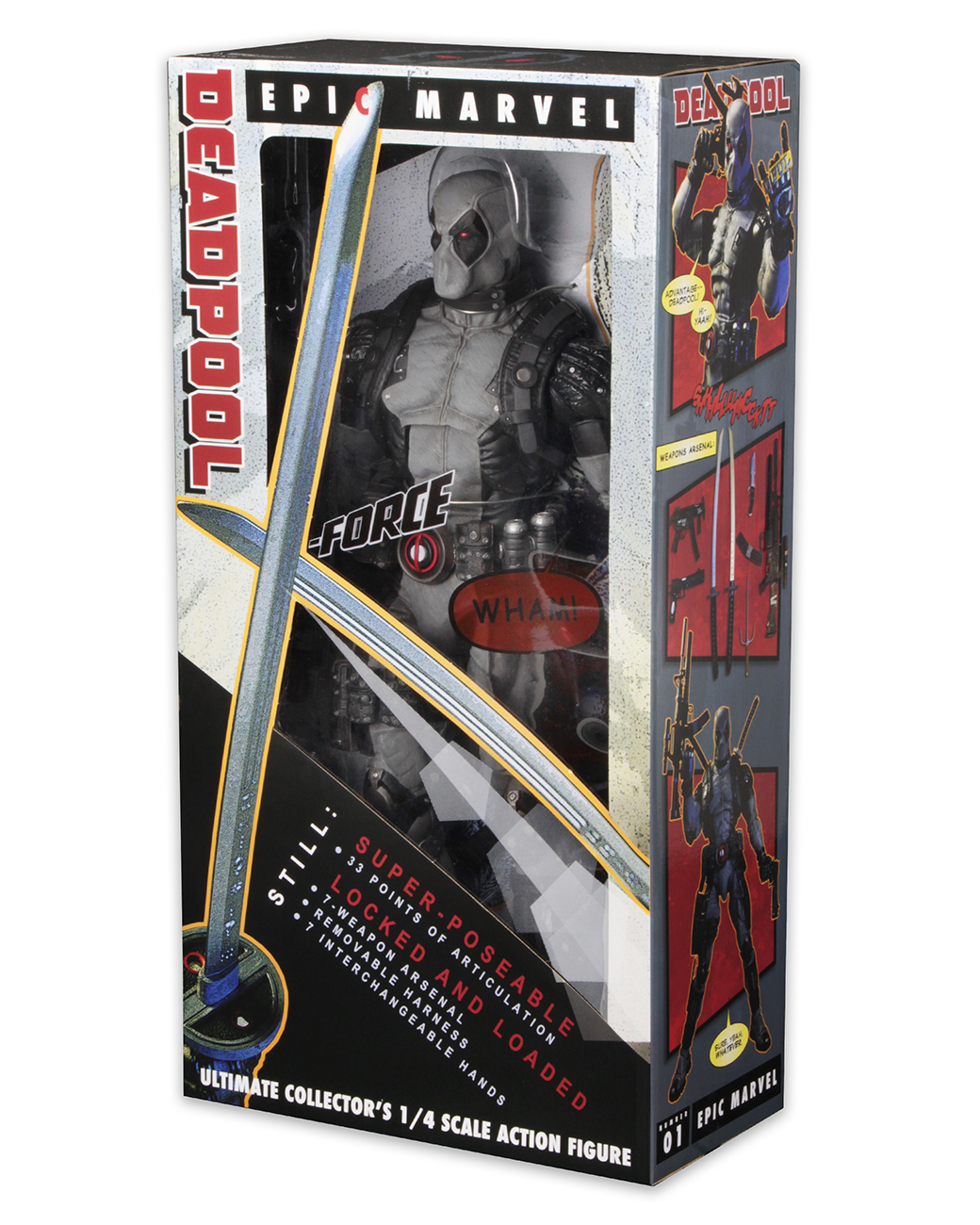 Marvel’s Merc with the Mouth returns to NECA’s line of quarter scale action figures with all new deco based on his black and gray costume with the X-Force team! Possibly the most skilled mercenary in the world (but definitely the most annoying), the taco-eating funnyman of the cold-blooded killer set has long skirted the line between hero and villain, between maniac and genius, between ugly and smelly.