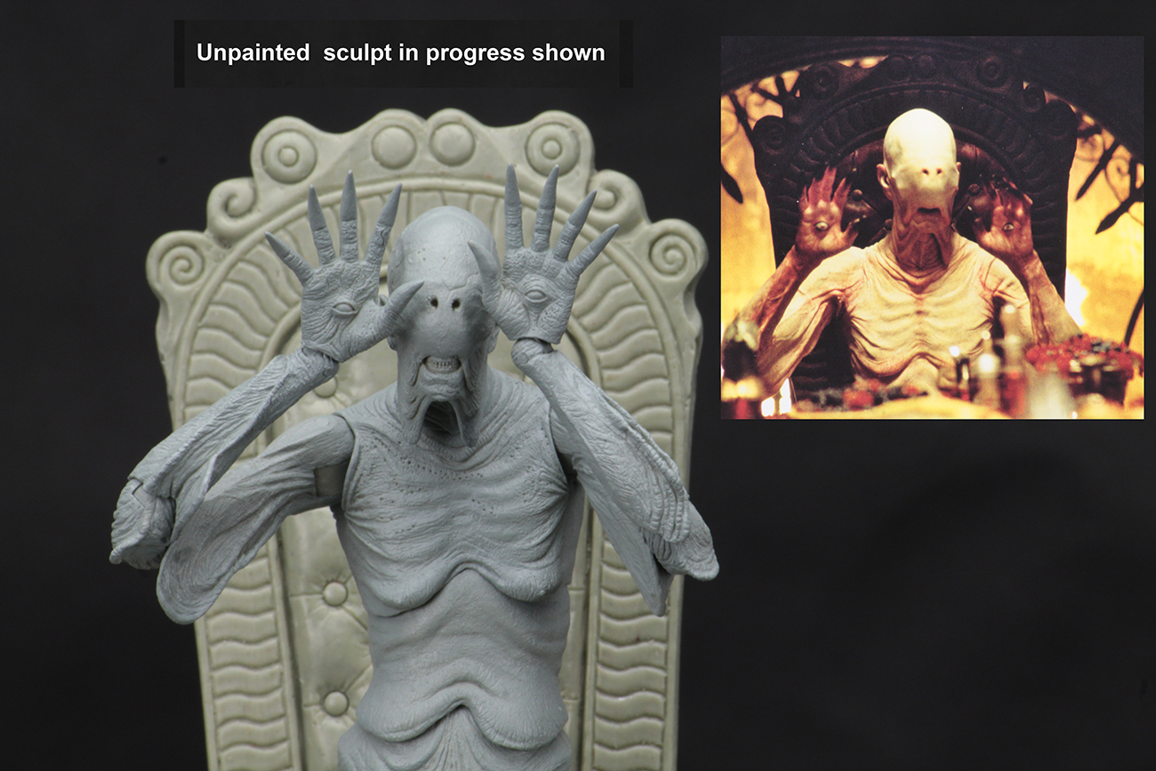 From the dark fantasy film Pan’s Labyrinth, the grotesque Pale Man is super-poseable and comes with a detailed Underworld Throne. Collectible deluxe window boxed packaging.