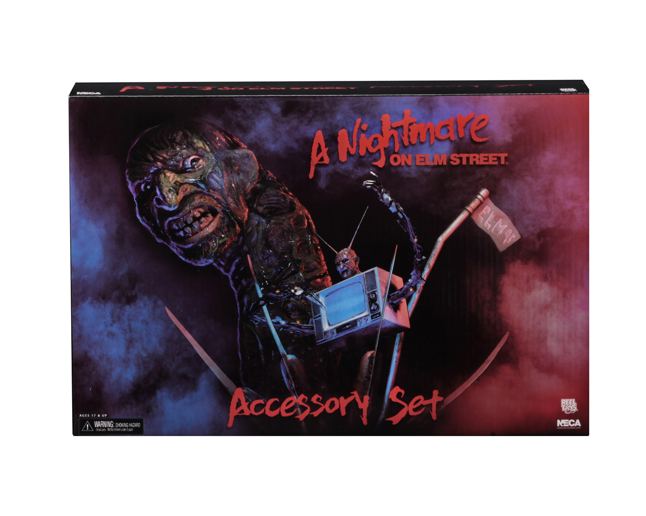 – Freddy TV (as seen in Dream Warriors) – Can be mounted on a diorama wall or displayed on desk or shelf. The arms are articulated and the antenna on Freddy’s head can be positioned.