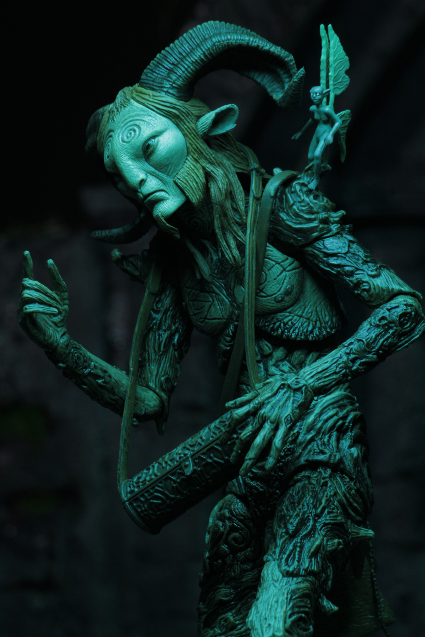From the dark fantasy film Pan’s Labyrinth, the mysterious Faun stands over 9” tall, is super-poseable and comes with detailed satchels, bone flute, dagger, and more. Collectible deluxe window boxed packaging.