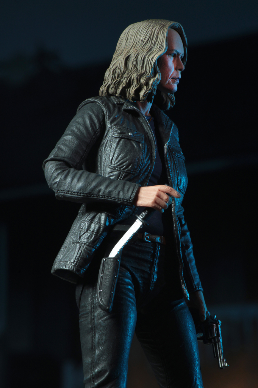 Based on her appearance in the thrilling new Halloween movie, Laurie stands over 7” tall and has received the Ultimate treatment, with over 25 points of articulation, and tons of attitude and accessories. The figure comes with 2 heads, shotgun, rifle, revolver, knife that fits into a sheath on her hip, and more.
