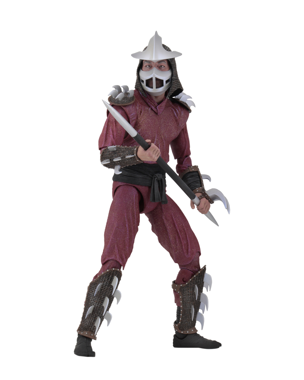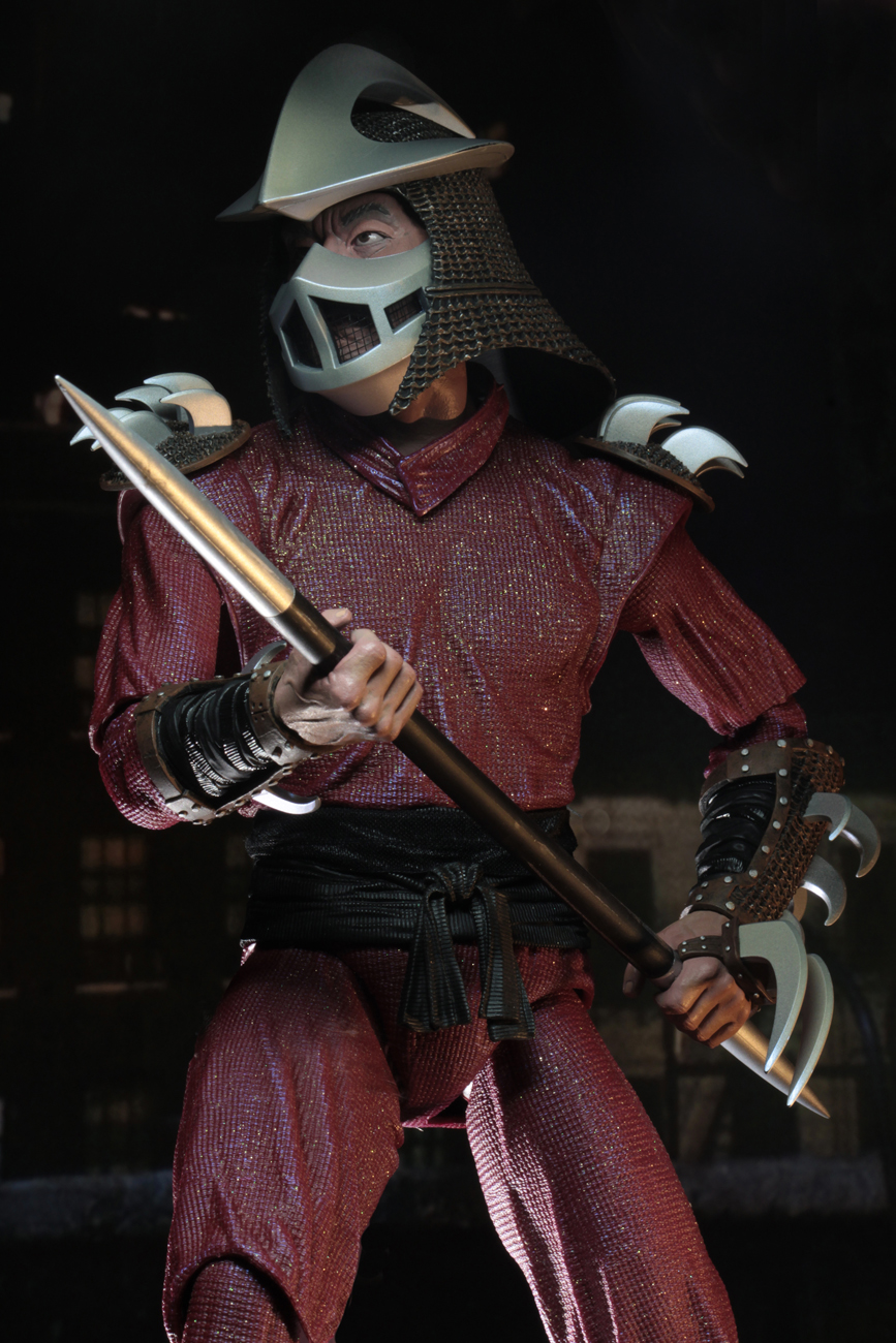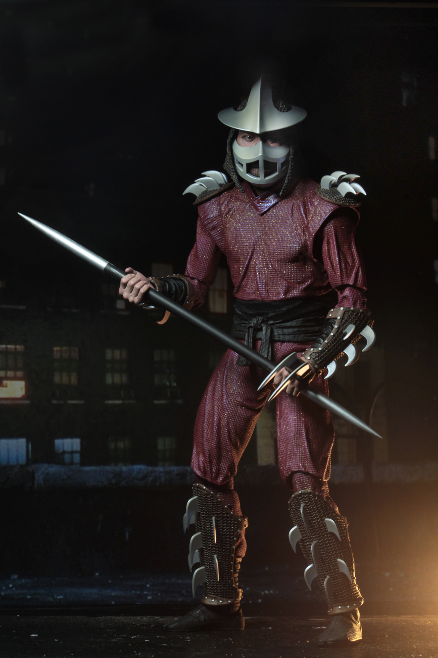This highly-detailed action figure stands 18” tall and features 30 points of articulation, including double elbows, to showcase Shredder’s steely skills. Shredder comes with a removable soft goods cape, removable mask, spear, and knife with sheath.
