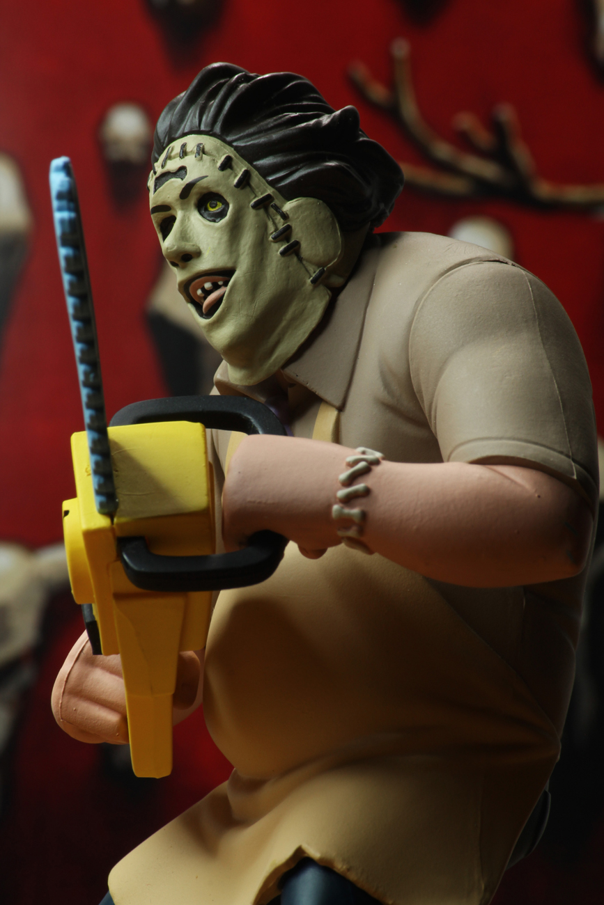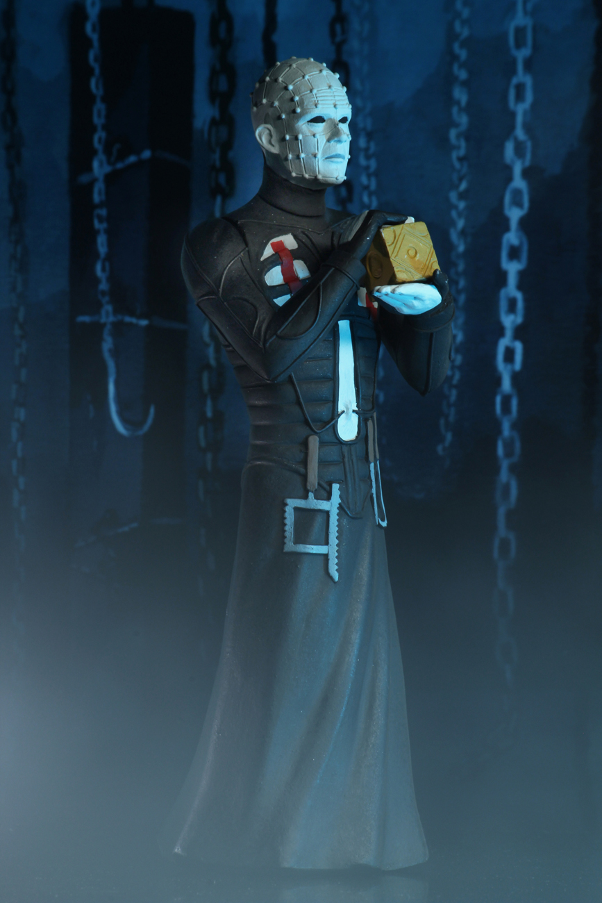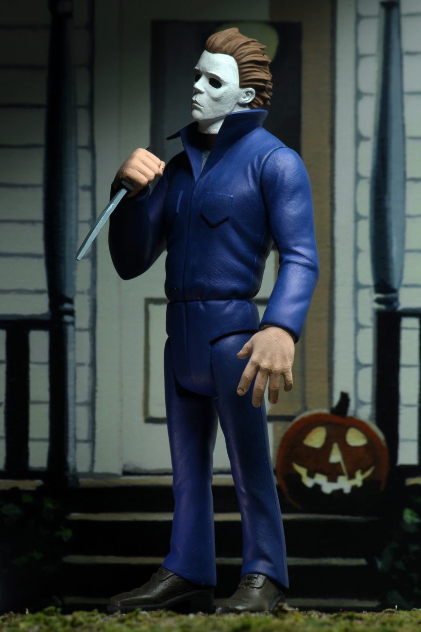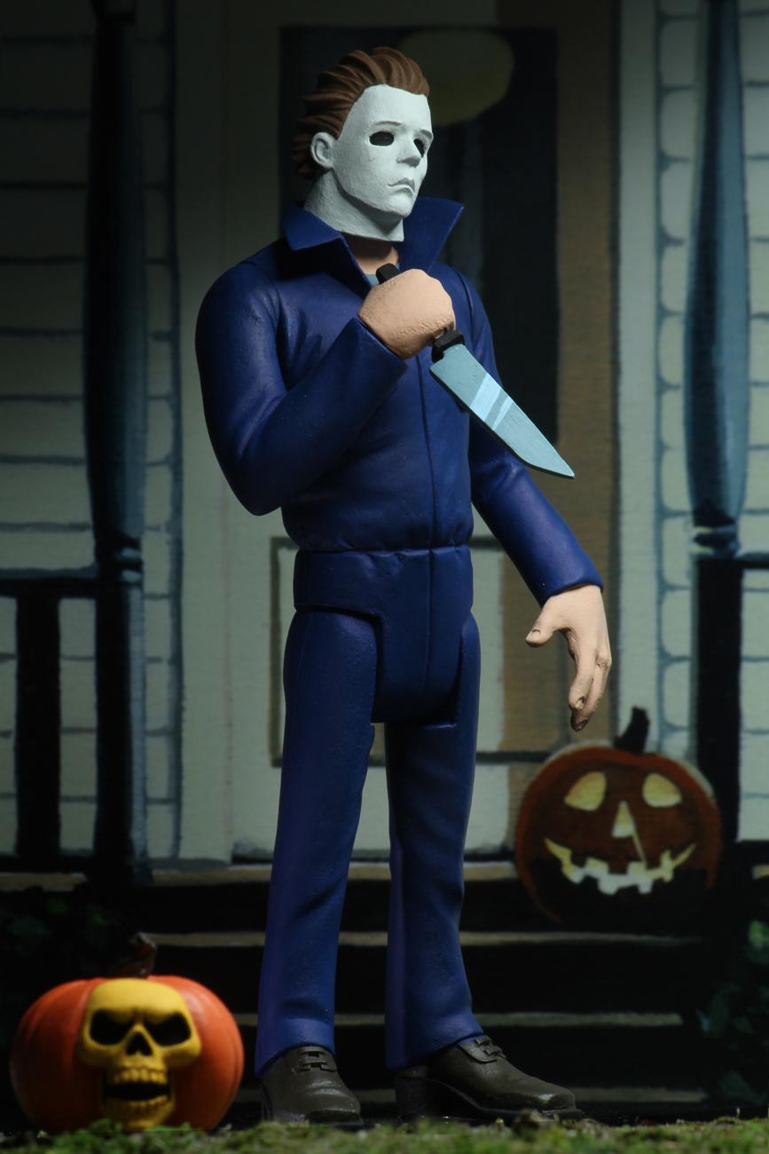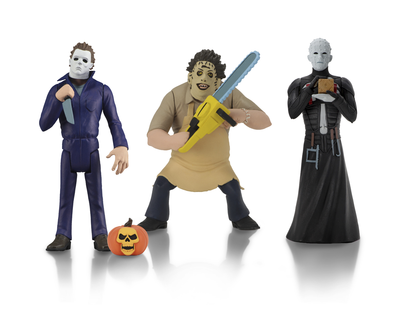 Standing approximately 6 inches tall, the action figure assortment includes Pinhead (Hellraiser), Leatherface (Texas Chainsaw Massacre), and Michael Myers (Halloween 2) complete with accessory jack-o-lantern.