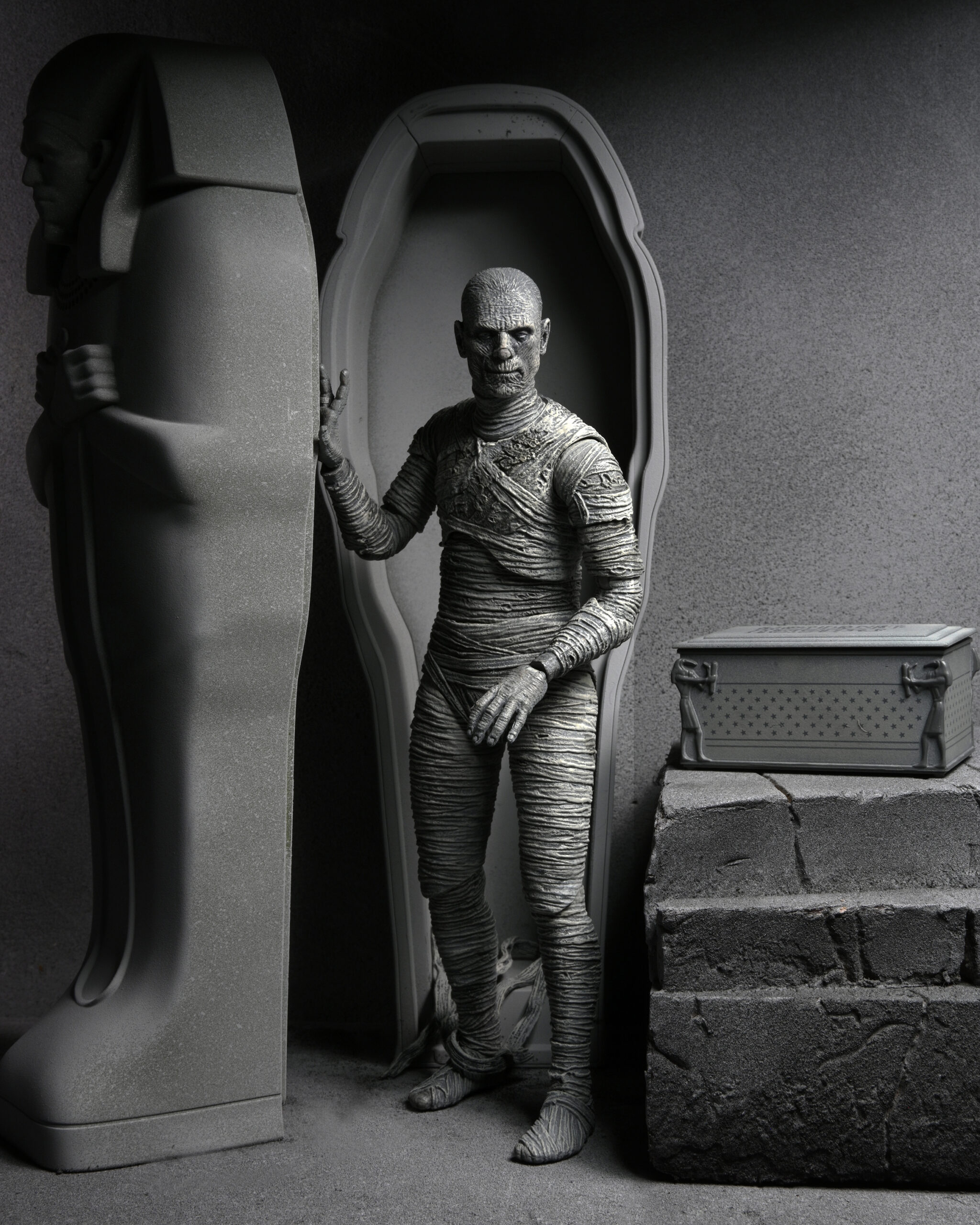 For the 90th anniversary of the extraordinary silver-screen classic, NECA presents The Mummy action figure in authentic black-and-white!