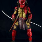 One of the most popular 8″ Predator figures released in 2012 was the Series 7 Big Red from the classic fan film, Dead End. This Summer marks the 10th Anniversary of that fan made movie milestone and we’re celebrating with a 19″ tall 1/4 scale version of Big Red. Adorned by his unique red helmet, red armor, golden wrist blades, and samurai swords the Big Red Predator is an impressive sight to behold. Includes 2 pairs of hands and 2 swords w/ sheaths with incredible detail and decoration along with separate fabric body netting