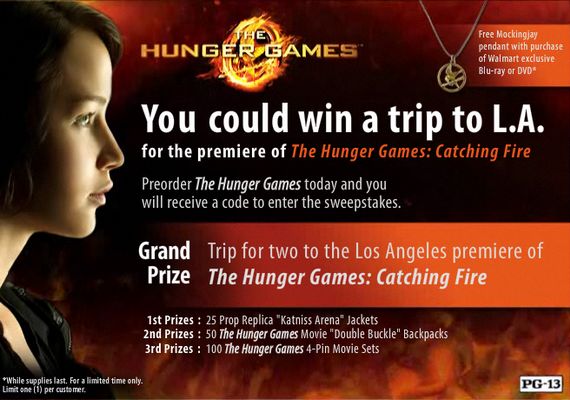- Customers who prefer to pre-order The Hunger Games 2-disc Blu-ray or DVD online at Walmart.com prior to the movie’s release on August 18 will have a chance to win a trip to Los Angeles to attend The Hunger Games: Catching Fire premiere or other exclusive prizes.