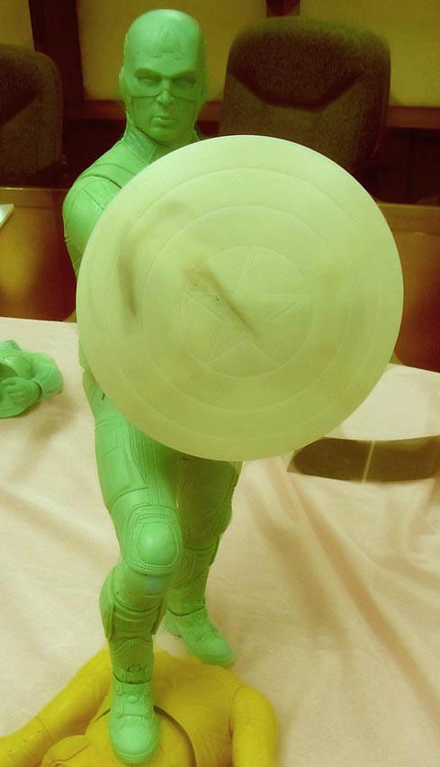 In another round of behind-the-scenes shots, Randy shared images of our upcoming Captain America action figure, which is coming out before the end of January next year. Then, for the first time ever, a shot of the Iron Man figure too!
