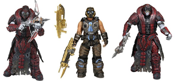 These individually packaged 7″ figures feature exclusive variants of the best of our Gears of Wars line! There’s a Golden COG Soldier with special gold detailing and accessories, and two versions of the Theron Sentinel.
