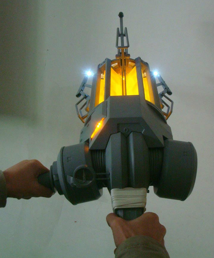 The Zero Point Energy Field Manipulator (ZPEFM), is a full size 1:1 model of the tractor beam type weapon featured in the Half Life video games and used by Gordon Freeman. The replica is created directly from the digital data supplied by Valve and is fully accurate and authentic to the in-game model. The ZPEFM is nearly 2 feet in length and features glowing orange LEDs, 2 handles, 2 triggers, and 4 unique sounds directly from the game.
