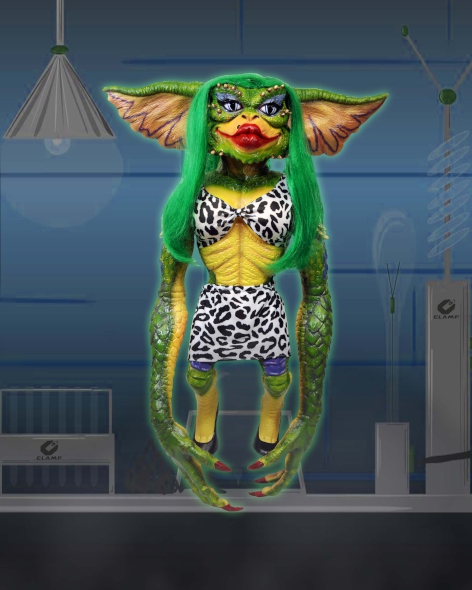 Based on the original film puppet as seen in Gremlins 2: The New Batch! This rubber and latex figure stands nearly 30″ tall and features fake eyelashes, a bright green wig, tailored clothing, and high heeled shoes. This frightening beauty is hand painted and comes complete with metal display stand. Limited to 1000 pieces worldwide!