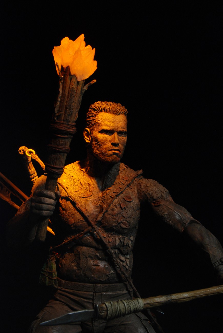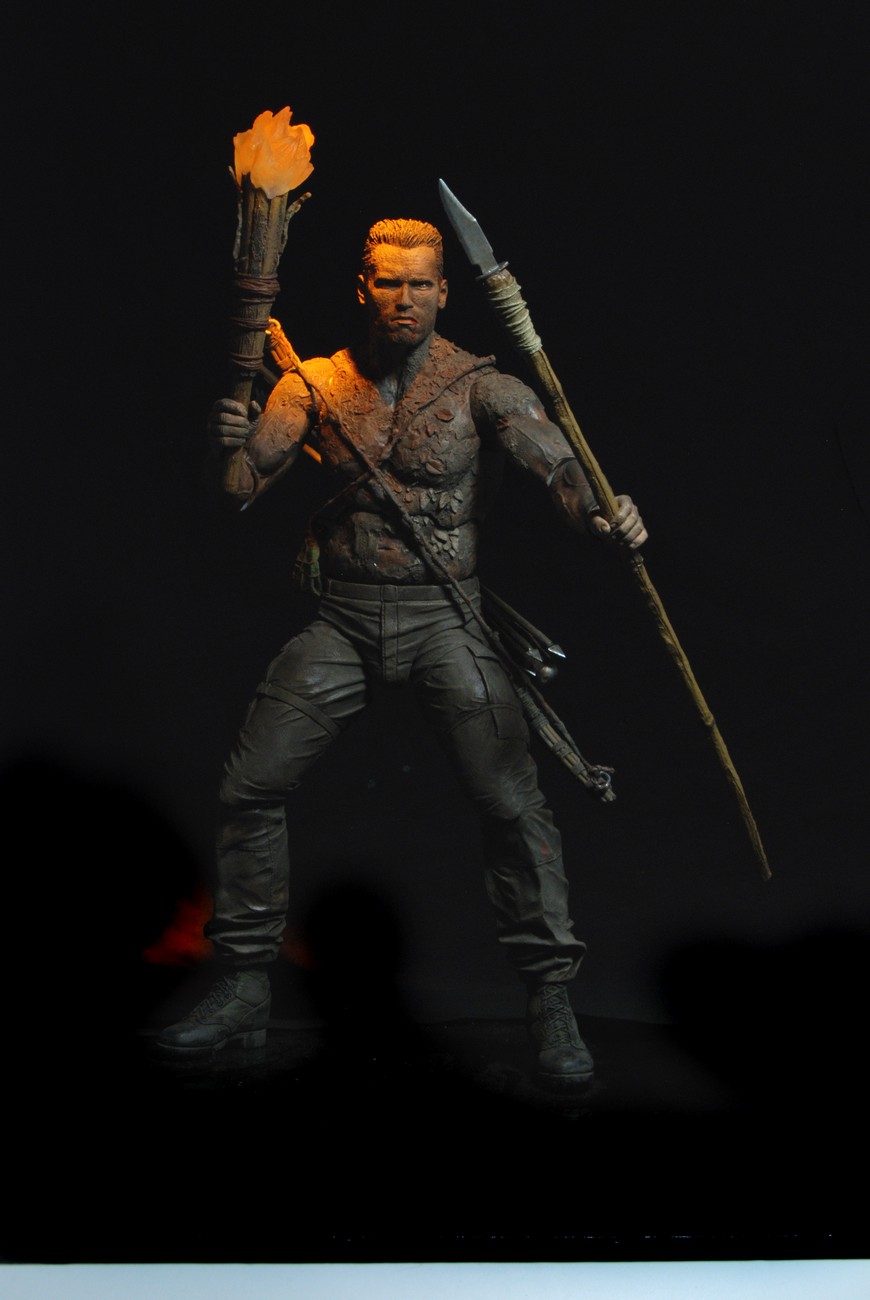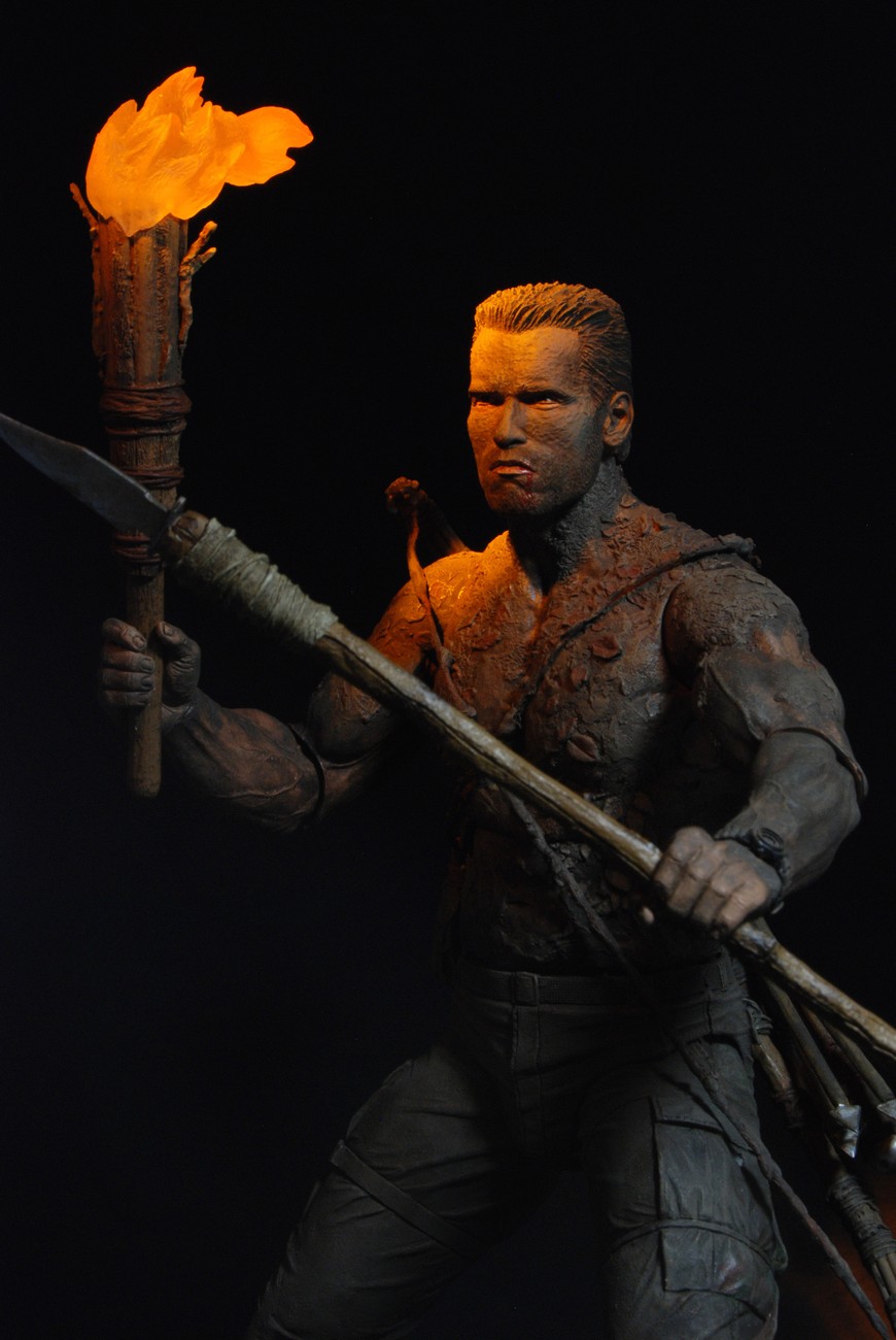 Jungle Encounter Dutch is faithful to his appearance when he first encounters the Predator in the jungle, complete with all new shirtless torso and military vest, features over 20 points of articulation, an M-16, Pistol, and Knife accessories. Jungle Disguise Dutch is immortalized in his mud disguise and features over 20 points of articulation along with Spears, Bow & Arrow accessories. Last but not least is a new and improved version of the Jungle Hunter Predator from when he de-cloaks while in the water.