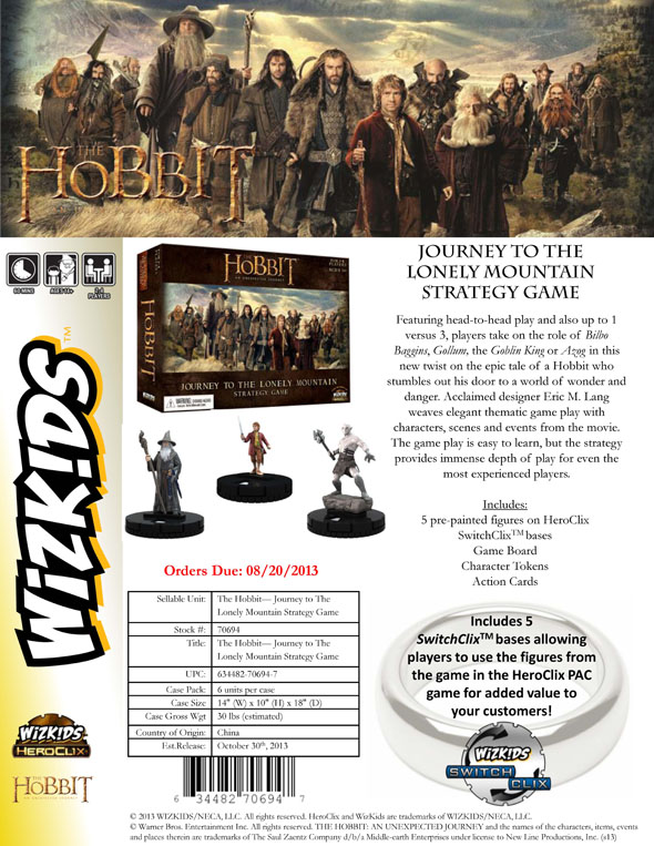 FEATURING SWITCHCLIX FIGURES: The Hobbit: Journey to the Lonely Mountain Strategy Game includes 5 SwitchClix™ bases allowing players to use the figures from the game in the HeroClix PAC game for added value to your customers!