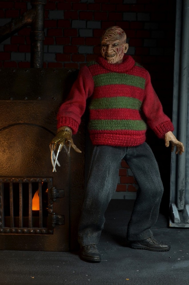 Freddy is based on his appearance in the original Nightmare on Elm Street movie. He comes with a removable hat and his trusty razor glove, and is entirely faithful to the movie. Blister card packaging with removable protective clamshell.