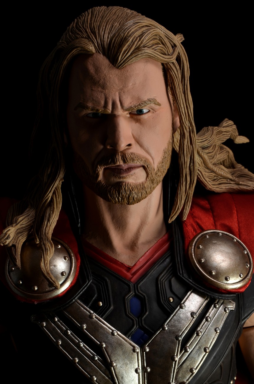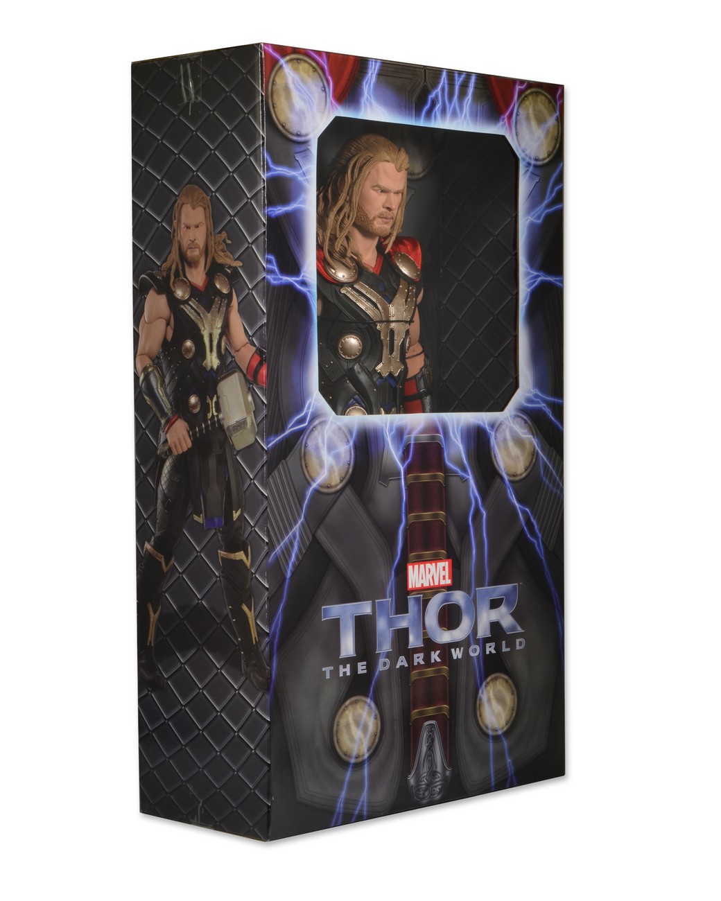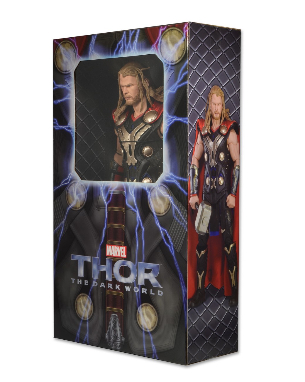 From Dark World, the highly anticipated sequel to Thor, comes this 18″ tall version of the Viking God! Featuring an incredibly lifelike portrait of actor Chris Hemsworth, Thor wears his latest Dark World costume and comes complete with his mighty hammer Mjolnir.