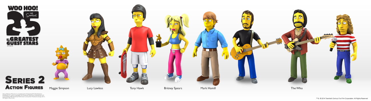 Series 2 includes The Who (Roger Daltrey, Pete Townshend, and John Entwistle), Mark Hamill, Britney Spears, Lucy Lawless, Tony Hawk, plus a brand-new version of Maggie Simpson!
