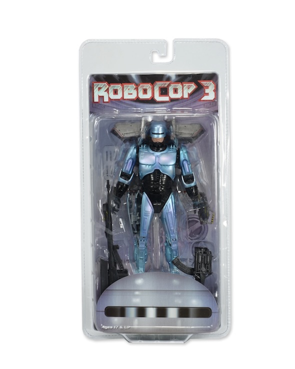 Robocop has a new look, and some of the most requested accessories from the fan and collector community. The Jetpack, as seen in Robocop 3, attaches to the figure’s back and comes complete with a cannon arm, just like in the film. As a bonus, we have also included the Cobra Assault Cannon from the original 1987 film! The cannon is compatible with this figure as well as all of NECA’s previous Robocop figure releases. The 7″ scale figure itself sports an all-new deco to reflect the character’s bluer color scheme in the sequel films.