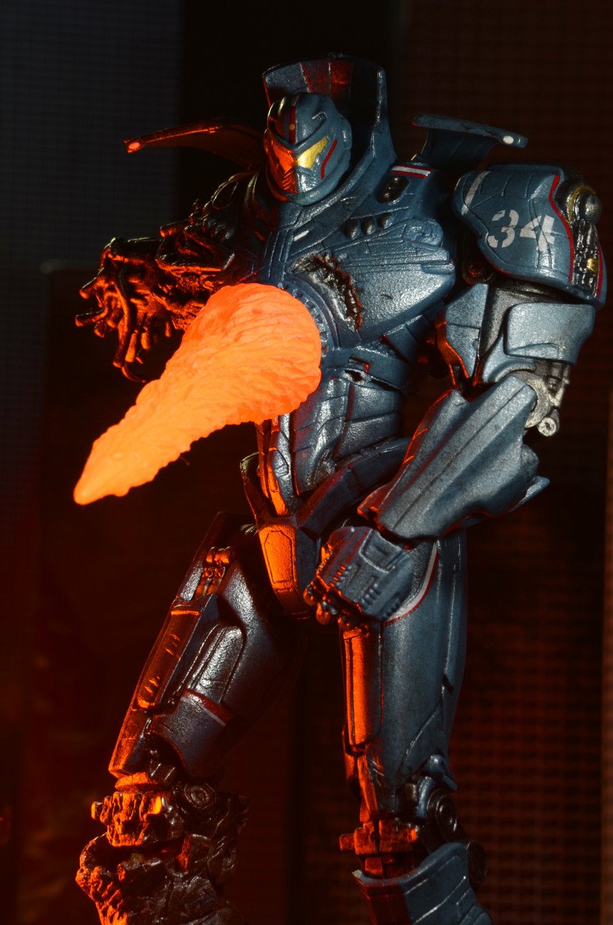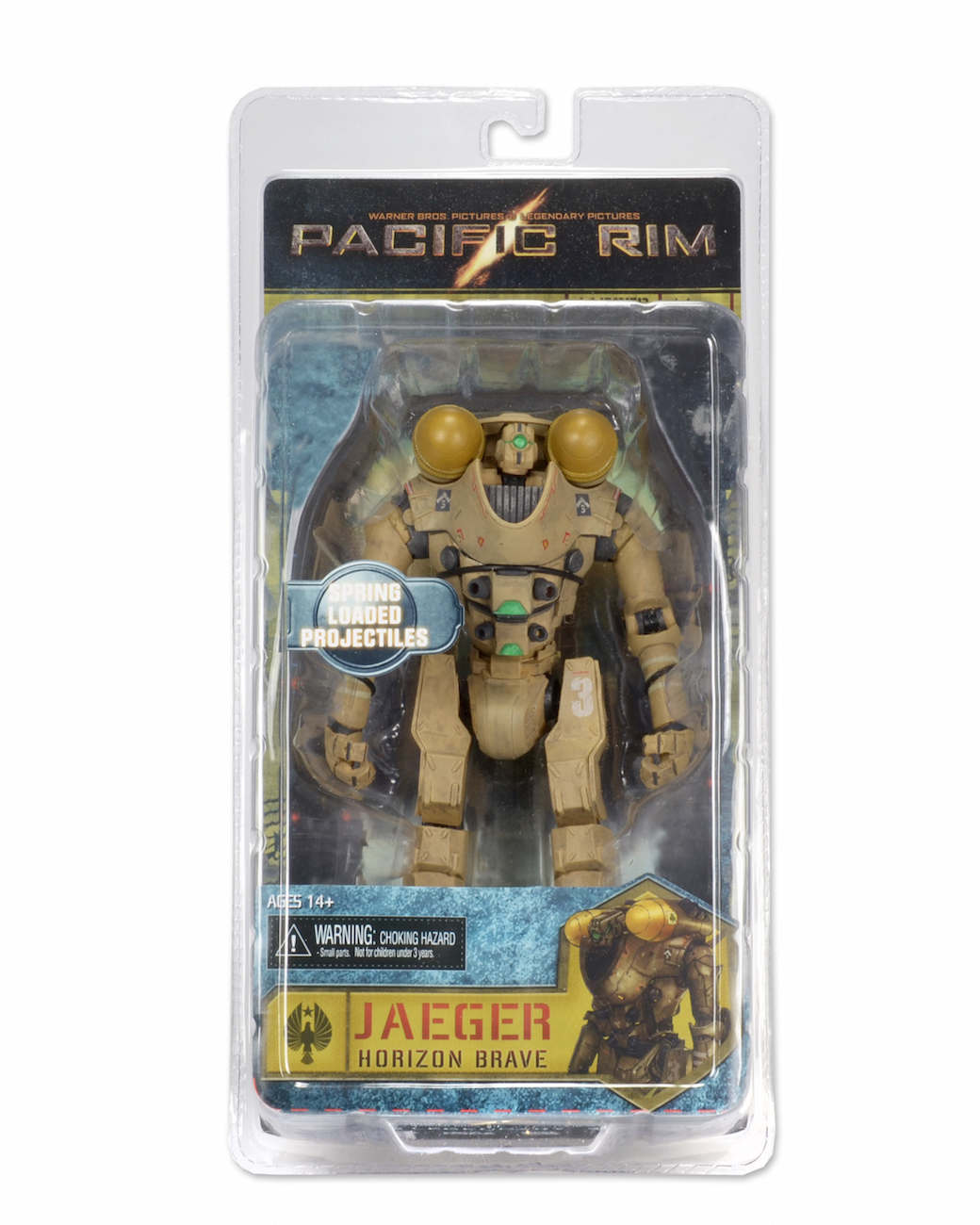 Reactor Blast Gipsy Danger features battle damage and uses the updated tooling introduced in Series 5. It comes with chain-sword accessory and an attachment that recreates a blast from the nuclear reactor in its chest. The fan-requested Horizon Brave is a Mark-1 Chinese Jaeger and one of the first Jaegers ever constructed. Highlights of its battles appear in newsreels during the prologue to Pacific Rim. Horizon Brave features a spring-loaded missile launching mechanism.