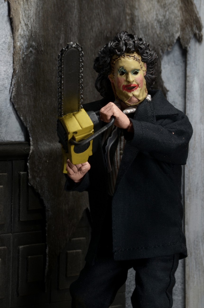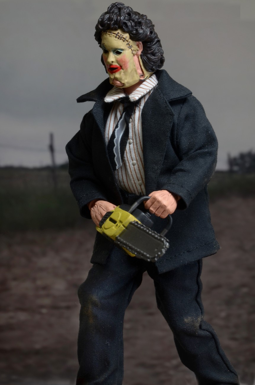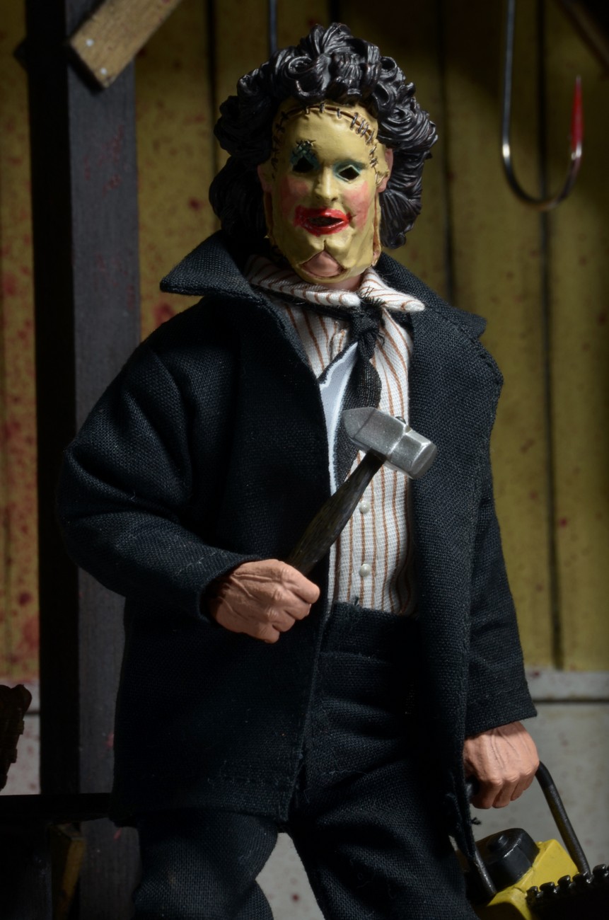 Get your toy fix retro-style, with this brand new version of Leatherface in his dinner attire from the original 1974 film.