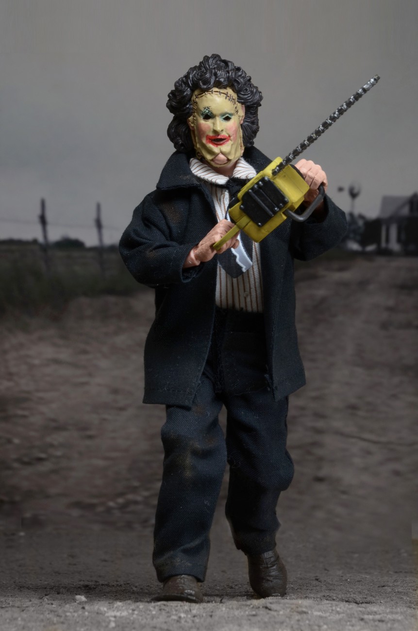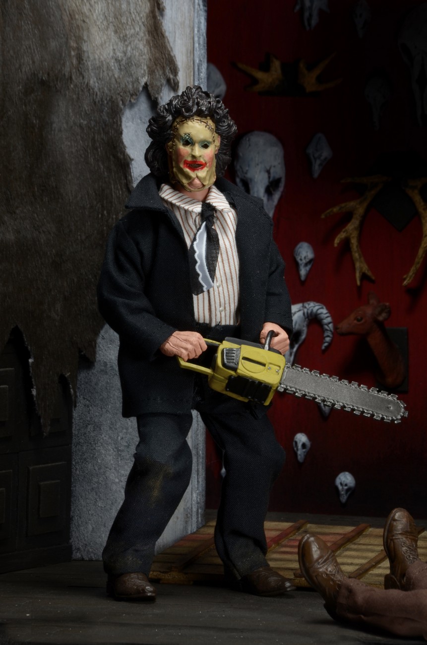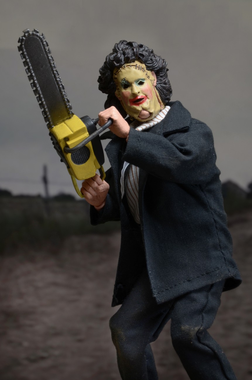 Get your toy fix retro-style, with this brand new version of Leatherface in his dinner attire from the original 1974 film.