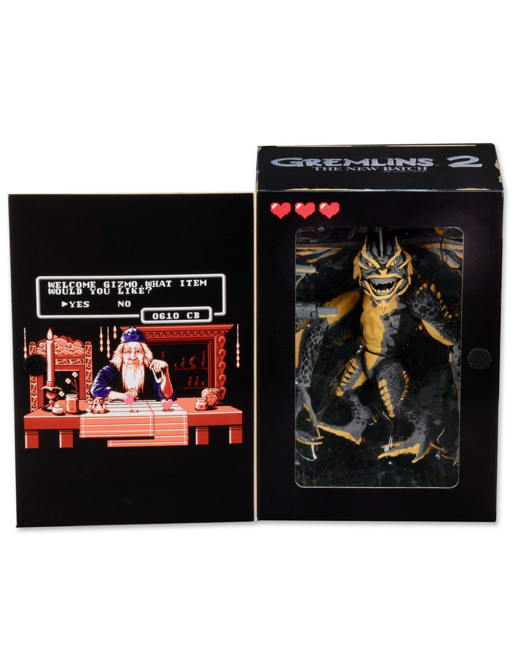 NECA’s line of classic video game tribute figures welcomes the most evil Gremlin of them all! Mohawk gets the 8-bit treatment based on his 1990 Gremlins video game appearance.