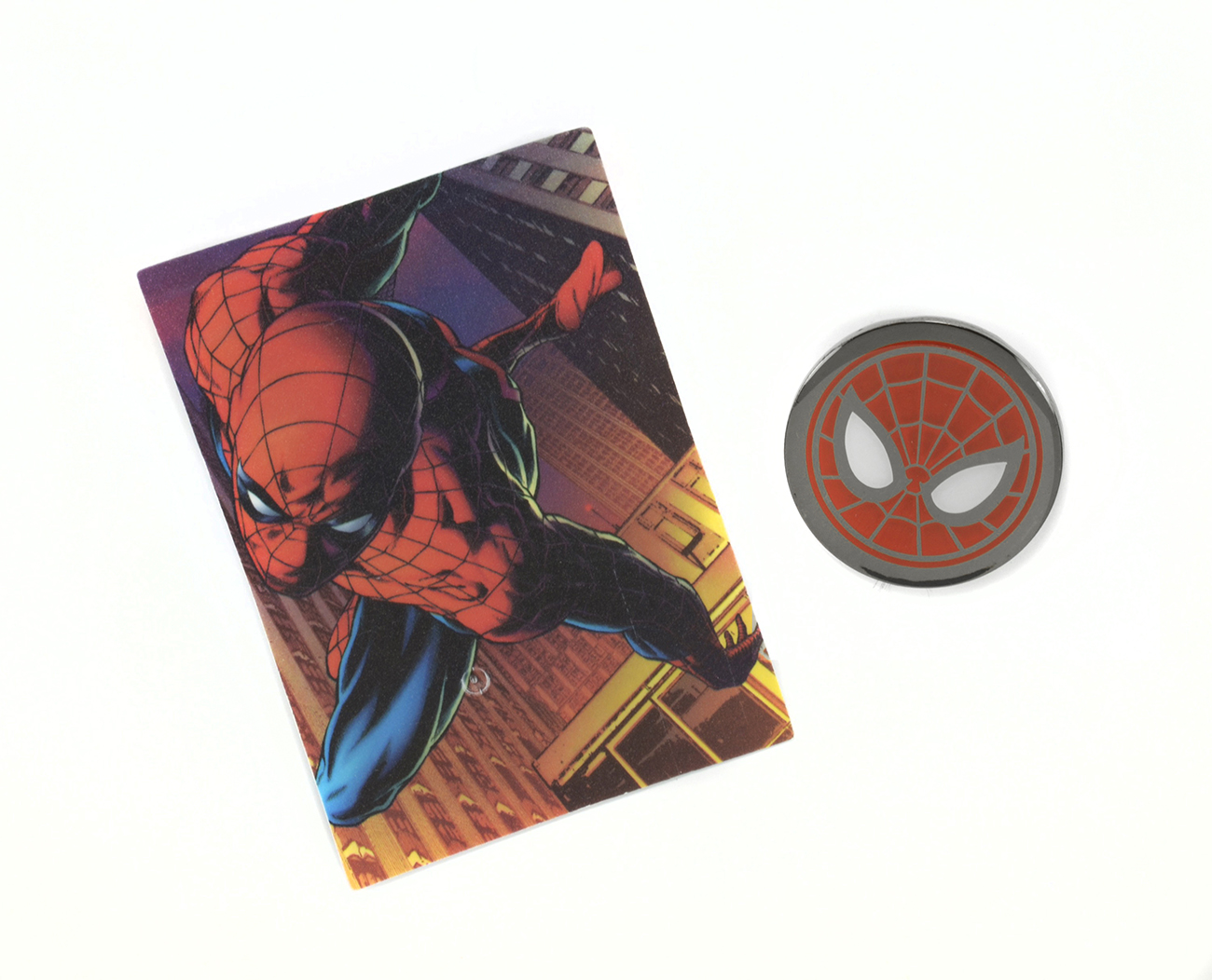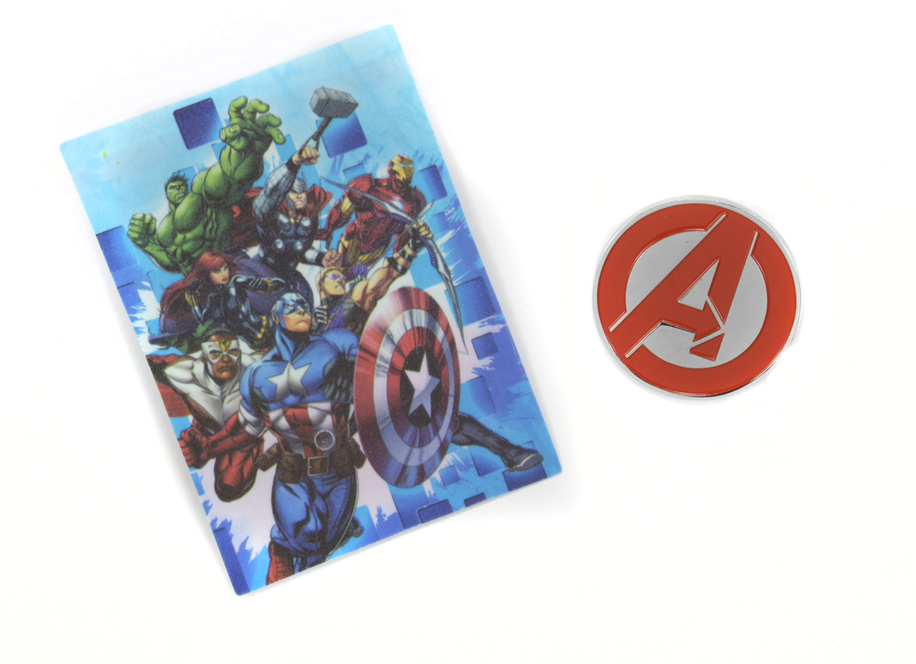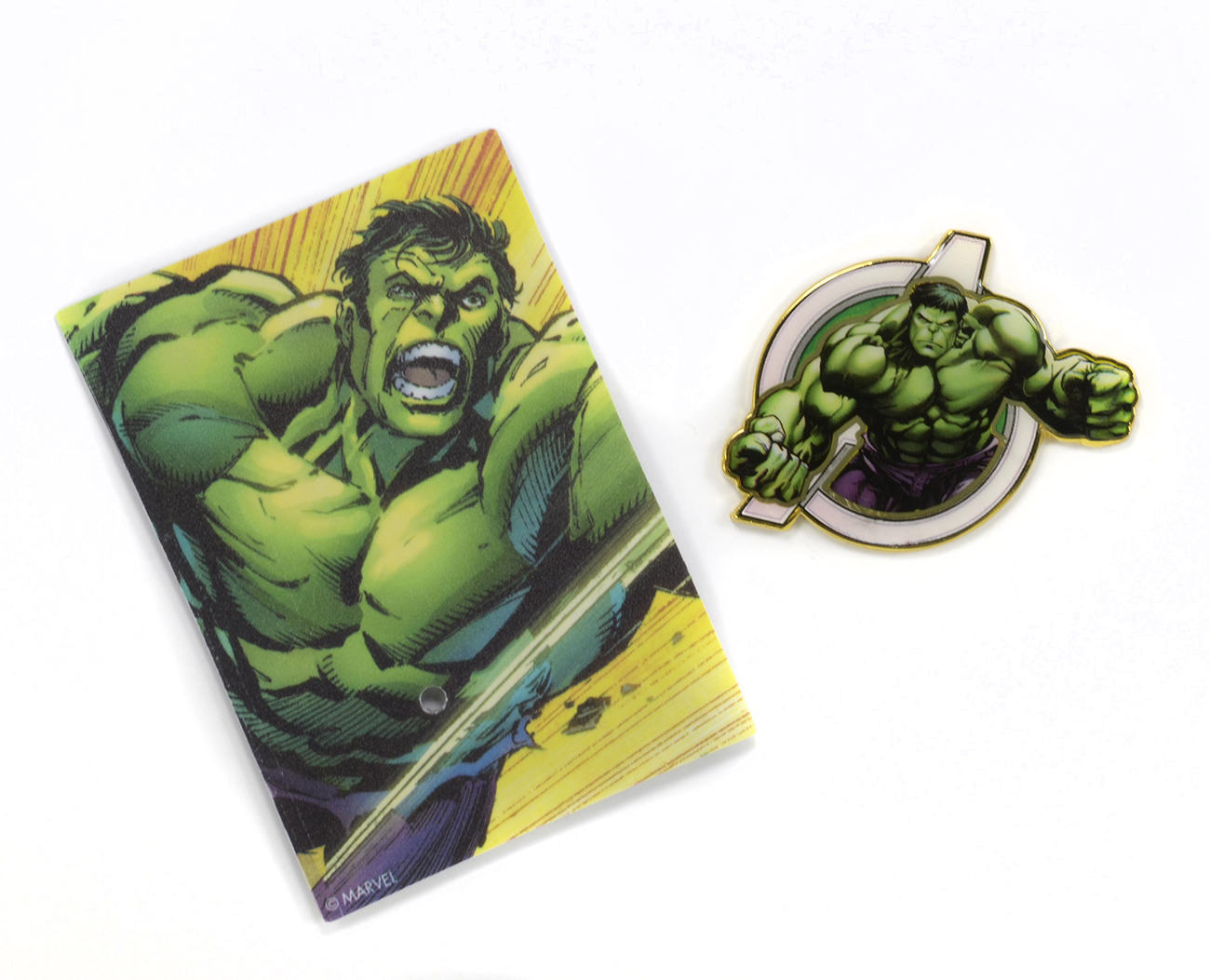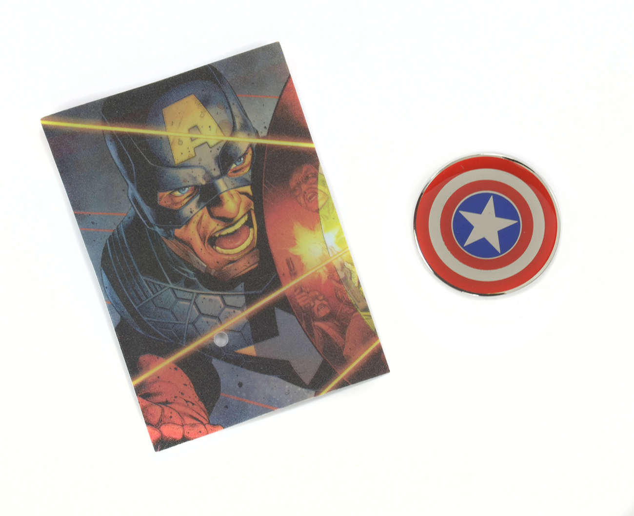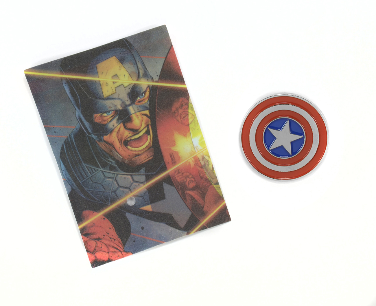 Each blind box includes one jumbo metal pin and one full-color, double-sided, premium collectible card for a character (or team) from the Marvel comic book universe. There are 27 fan-favorite characters in all, like Spider-Man, Captain America, Hulk, Doctor Strange, Iron Fist and many more.