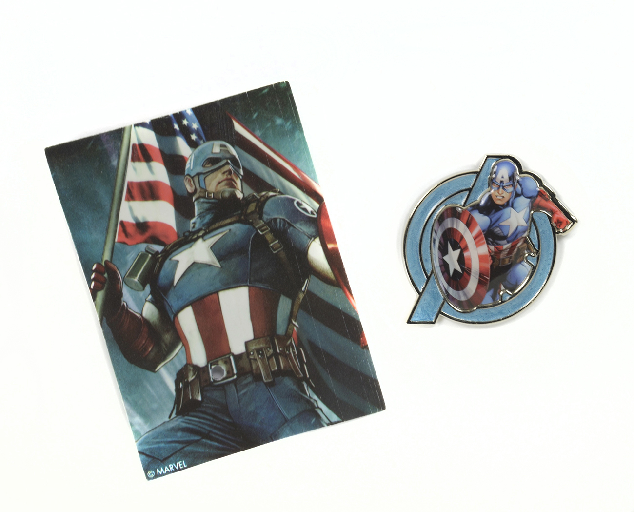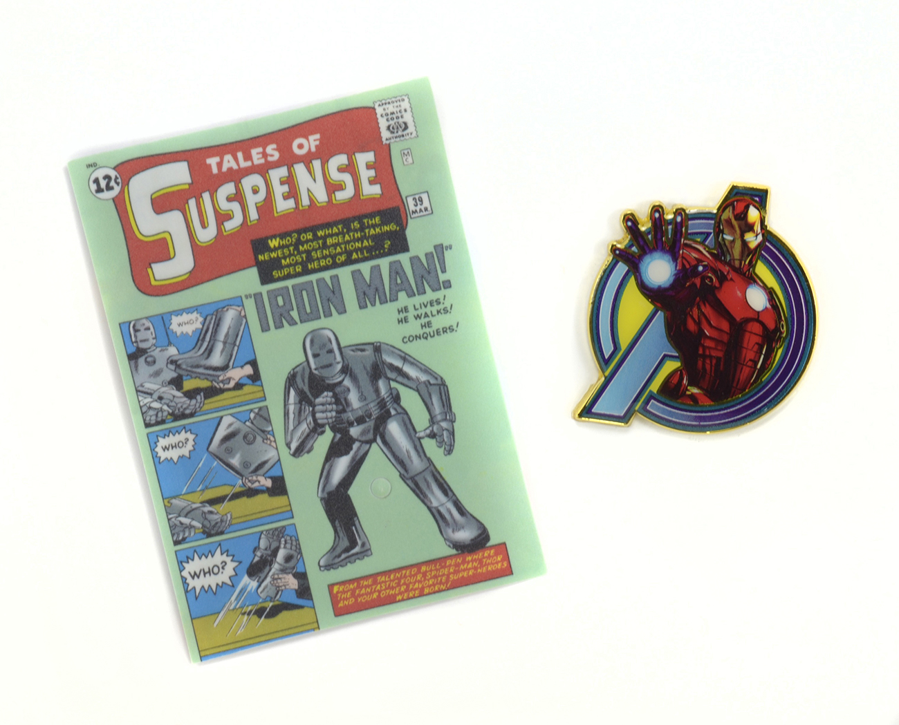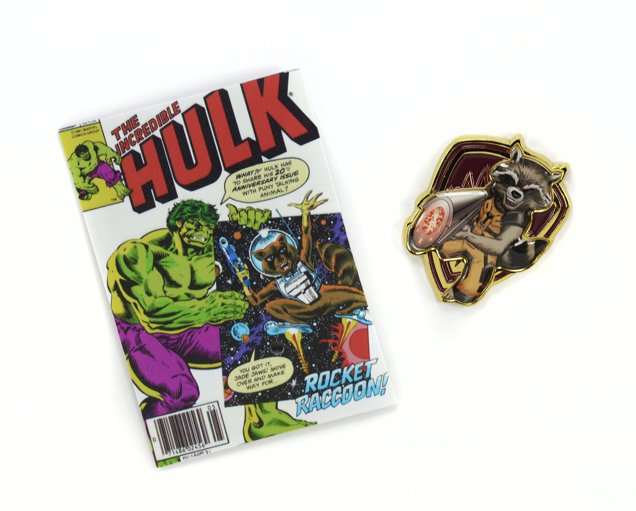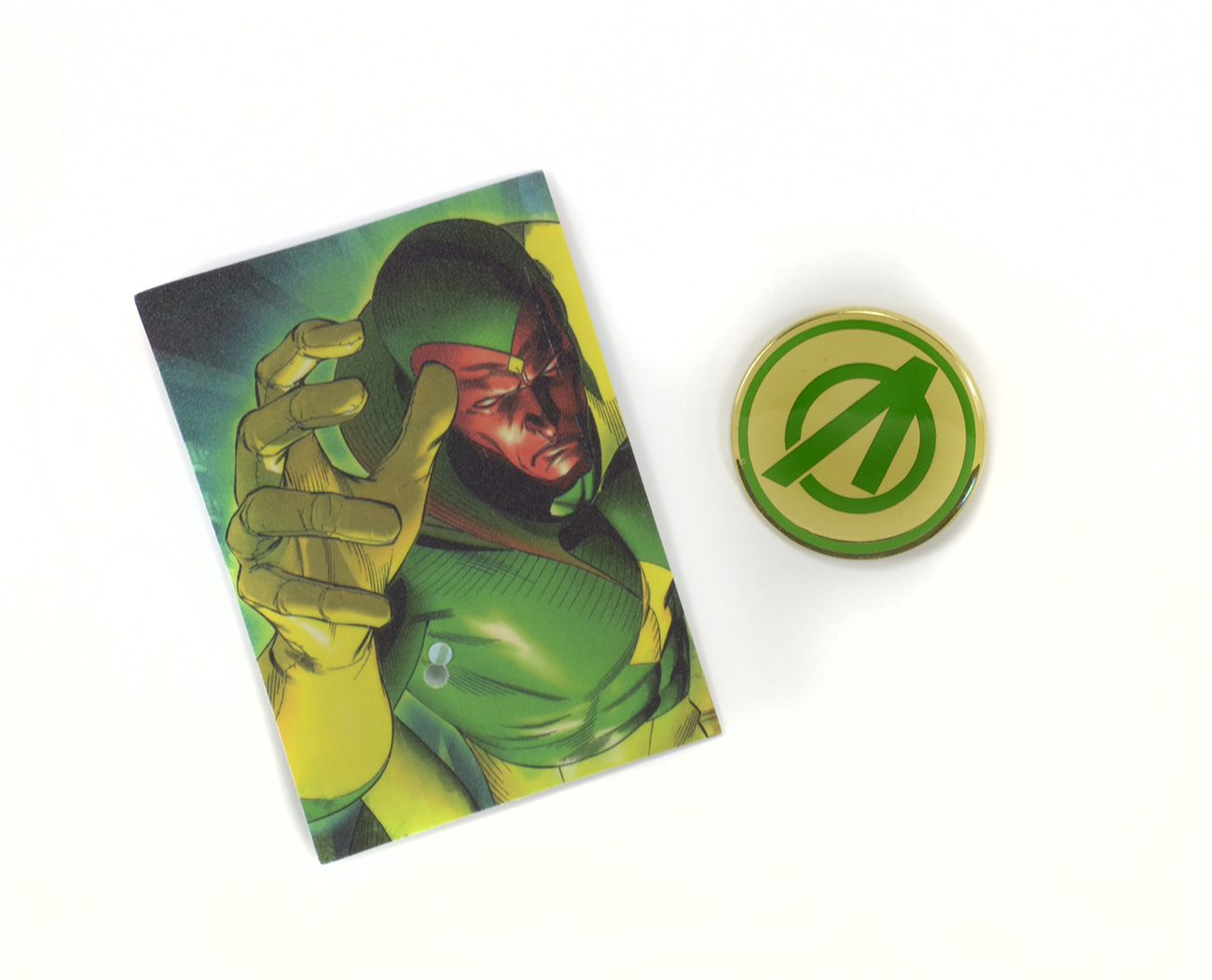 Each blind box includes one jumbo metal pin and one full-color, double-sided, premium collectible card for a character (or team) from the Marvel comic book universe. There are 27 fan-favorite characters in all, like Spider-Man, Captain America, Hulk, Doctor Strange, Iron Fist and many more.