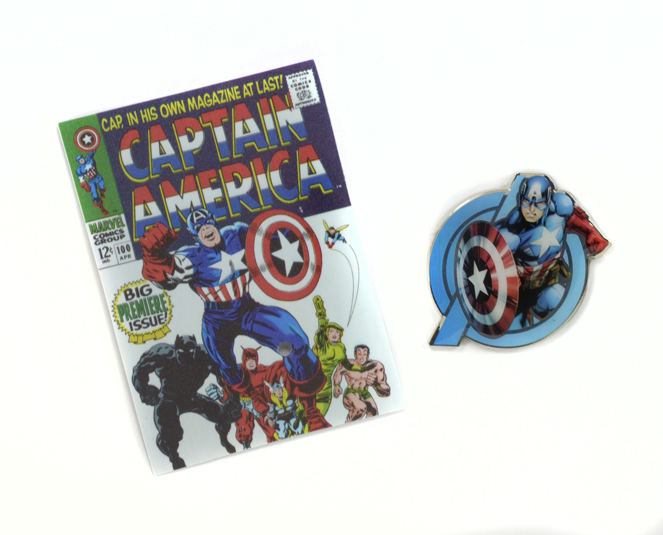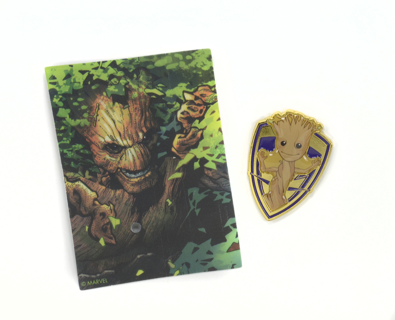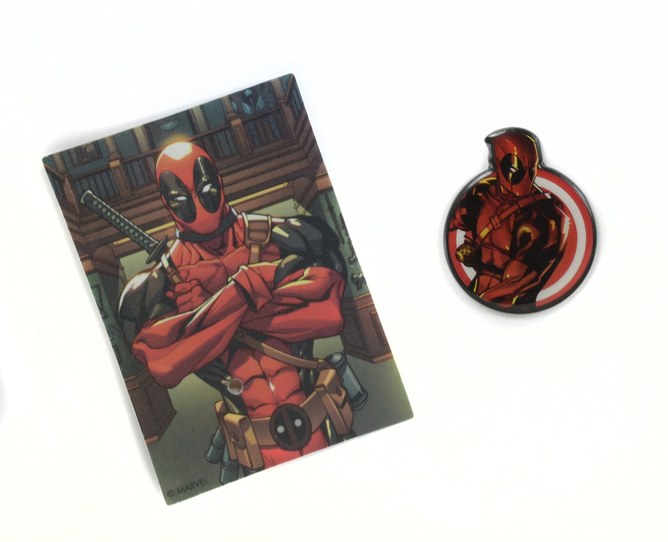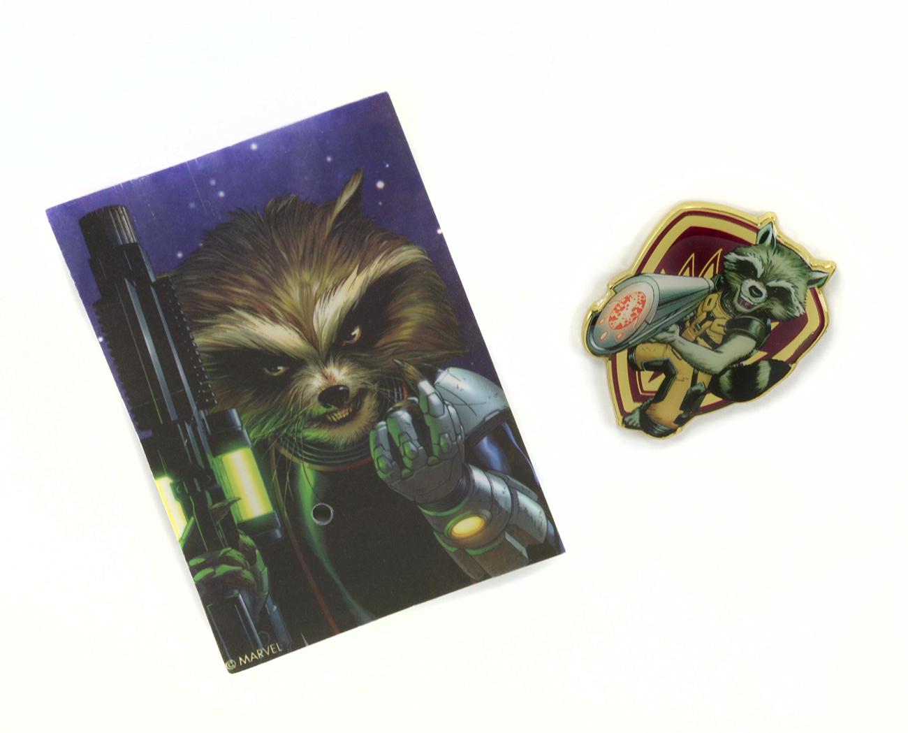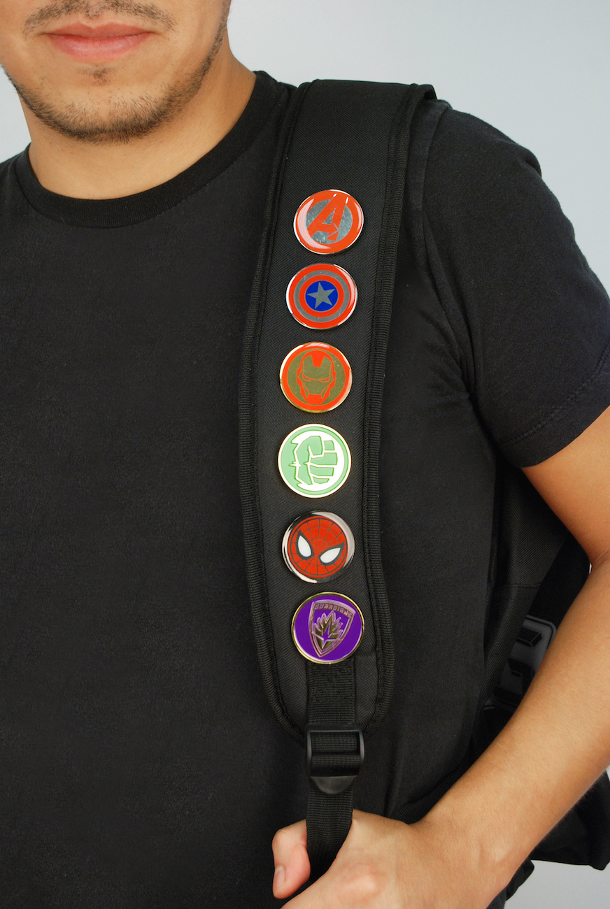 Each blind box includes one jumbo metal pin and one full-color, double-sided, premium collectible card for a character (or team) from the Marvel comic book universe. There are 27 fan-favorite characters in all, like Spider-Man, Captain America, Hulk, Doctor Strange, Iron Fist and many more.