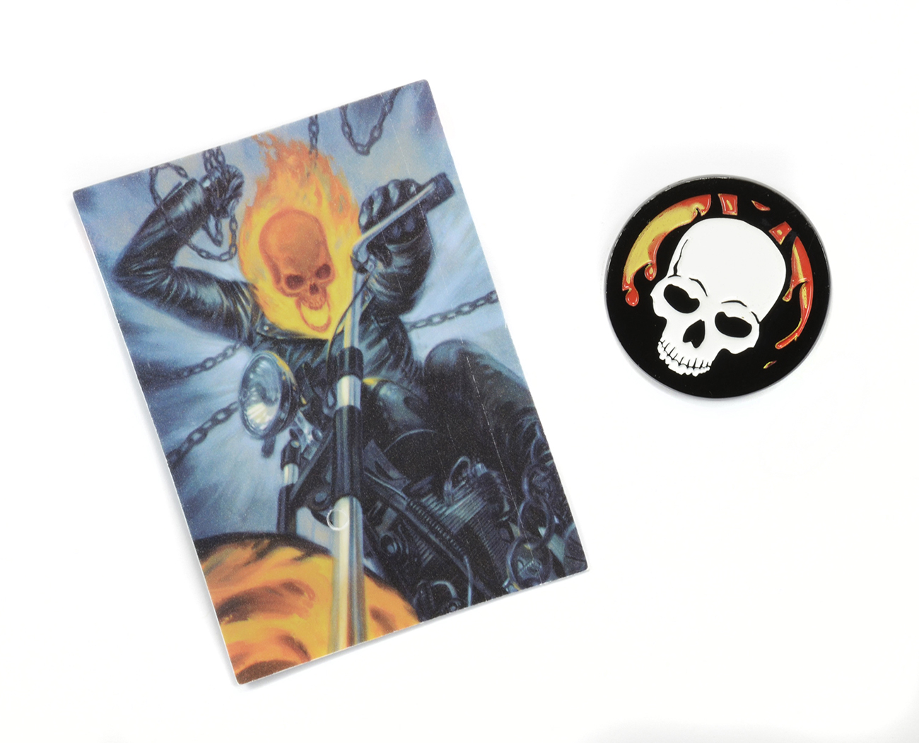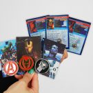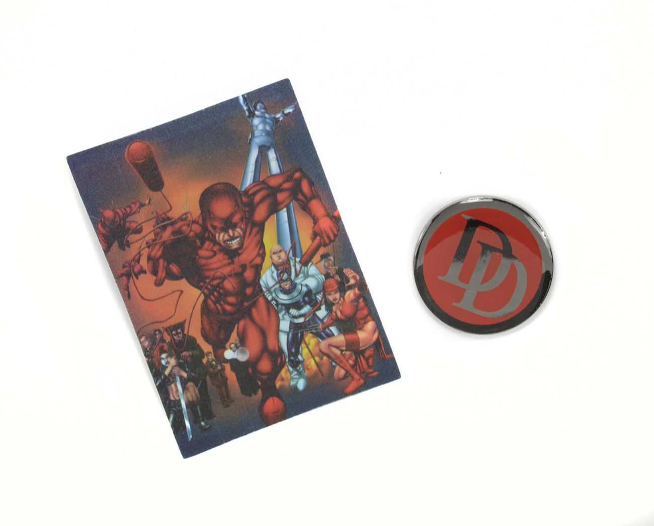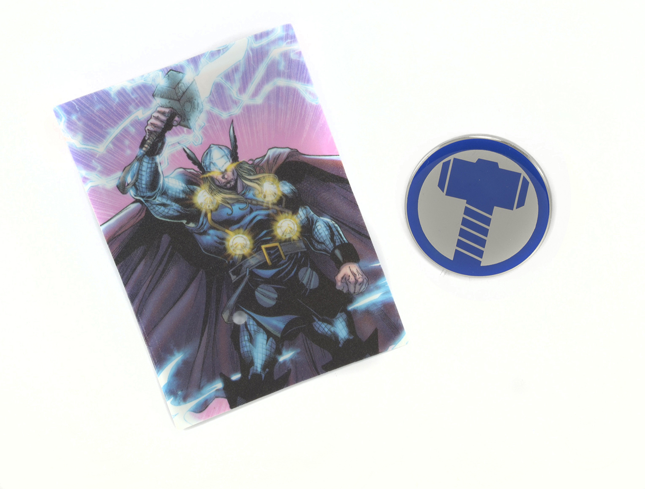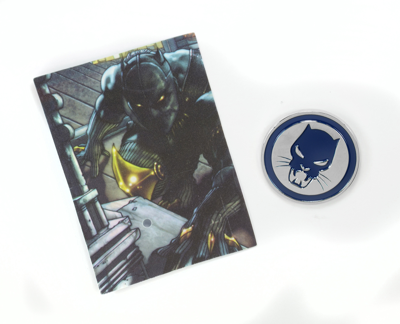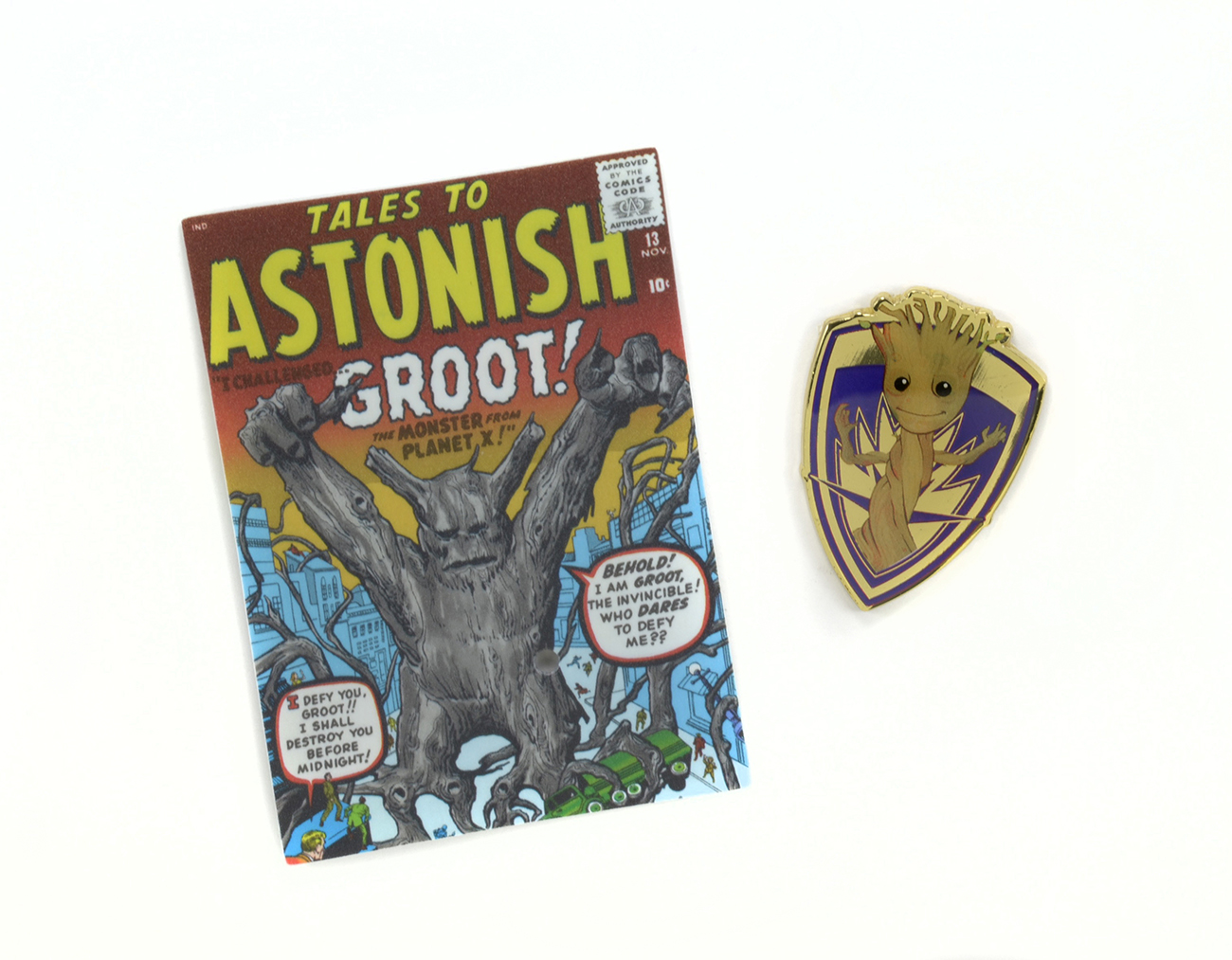 Each blind box includes one jumbo metal pin and one full-color, double-sided, premium collectible card for a character (or team) from the Marvel comic book universe. There are 27 fan-favorite characters in all, like Spider-Man, Captain America, Hulk, Doctor Strange, Iron Fist and many more.