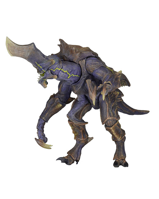The heroic mech gets the “Ultimate” treatment, with a fully articulated 2.0 body type featuring LED lights in the chest. It’s equipped to do battle with deadly kaiju: weapon accessories include two chain swords and two plasma cannons, plus it has five different interchangeable hands and interchangeable forearms so you can recreate various battle damage throughout the movie. The 7” scale figure is made from the actual digital files utilized by ILM in the creation of Pacific Rim for exacting accuracy and detail.