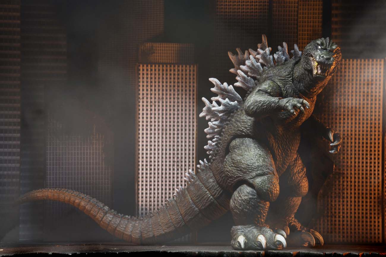 This version of the beloved monster is based on the 2001 movie <em>Godzilla, Mothra, and King Ghidorah: Giant Monsters All-Out Attack</em>, a spectacular battle between Godzilla and some of his most famous foes. The figure stands over 6″ tall, with a head-to-tail measurement of over 12″ long. It features incredible detail and over 30 points of articulation, including an articulated tail!