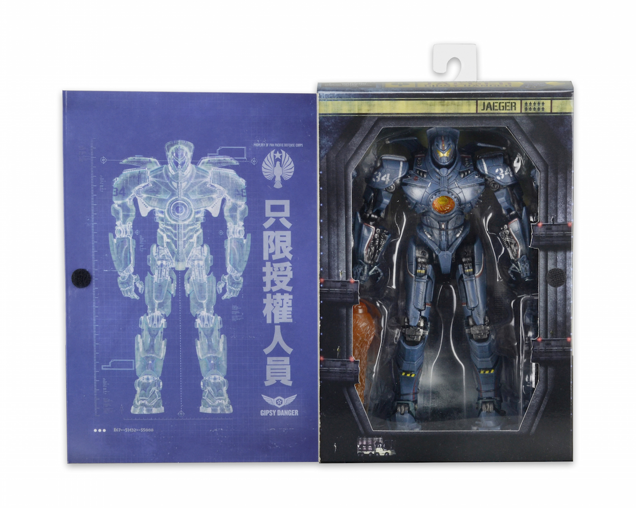 The heroic mech gets the “Ultimate” treatment, with a fully articulated 2.0 body type featuring LED lights in the chest. It’s equipped to do battle with deadly kaiju: weapon accessories include two chain swords and two plasma cannons, plus it has five different interchangeable hands and interchangeable forearms so you can recreate various battle damage throughout the movie. The 7” scale figure is made from the actual digital files utilized by ILM in the creation of Pacific Rim for exacting accuracy and detail.