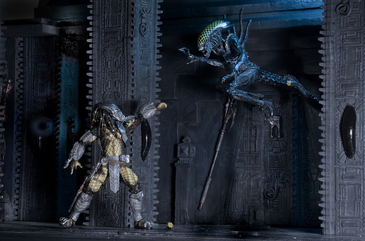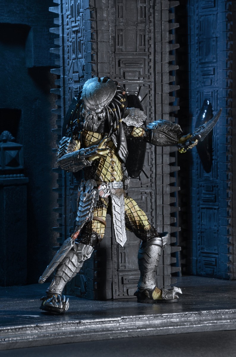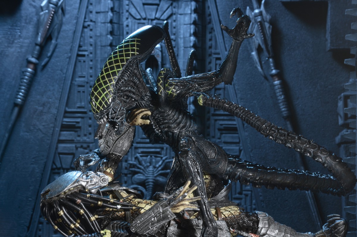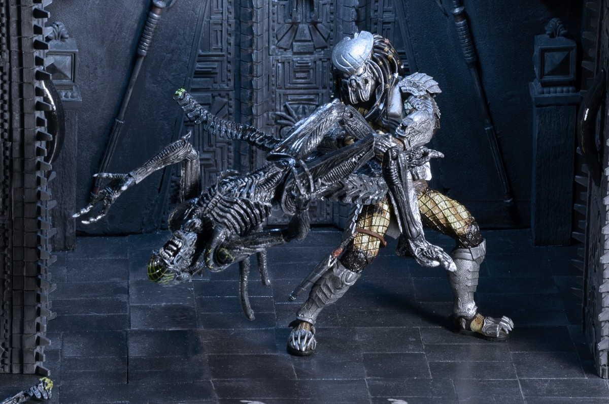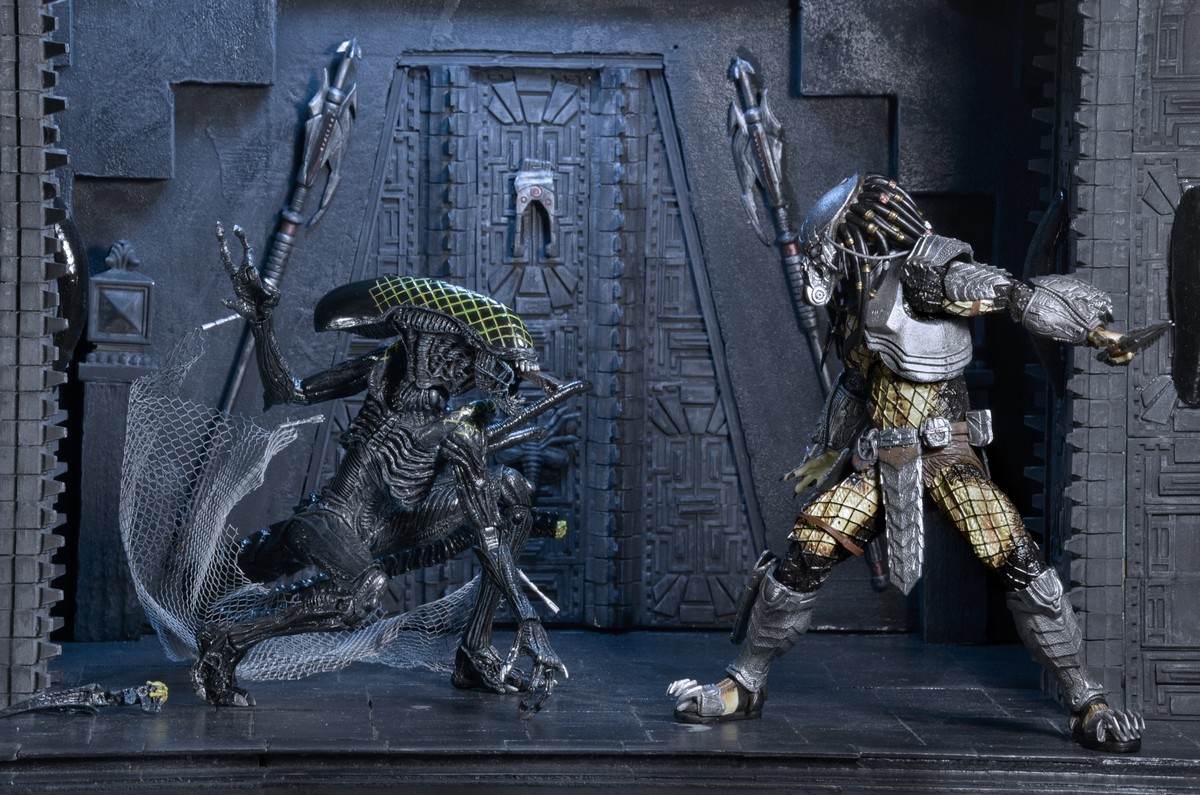 Standing over 8” tall, Battle-Damaged Celtic Predator features a new damaged mask and blades, as well as a stripped-down armor setup. Battle-Damaged Grid Alien stands over 9” tall and features an extendable inner mouth, as well as a damaged bendable tail with severed tail tip that can be used as a hand-held weapon by Celtic. The set also includes an actual net with drawstring enclosure to ensnare your Xenomorphs! Both figures feature over 30 points of articulation and decoration that is exclusive to this set and not available anywhere else.