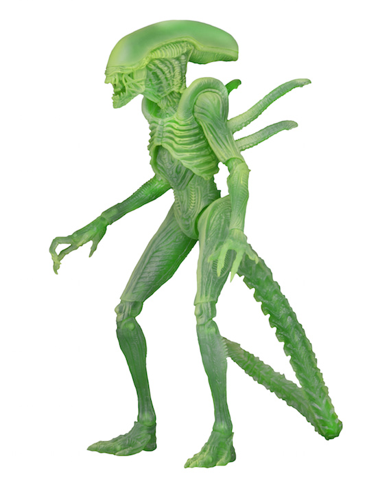 This glow-in-the-dark version of the Warrior Alien is based on the Alien vs. Predator movie, which pits the deadly Xenomorphs against the galaxy’s most feared hunters! It depicts the creature as it appears in a Predator’s thermal vision… just before he strikes. The Warrior Alien features over 30 points of articulation and a bendable tail, and stands over 9” tall.