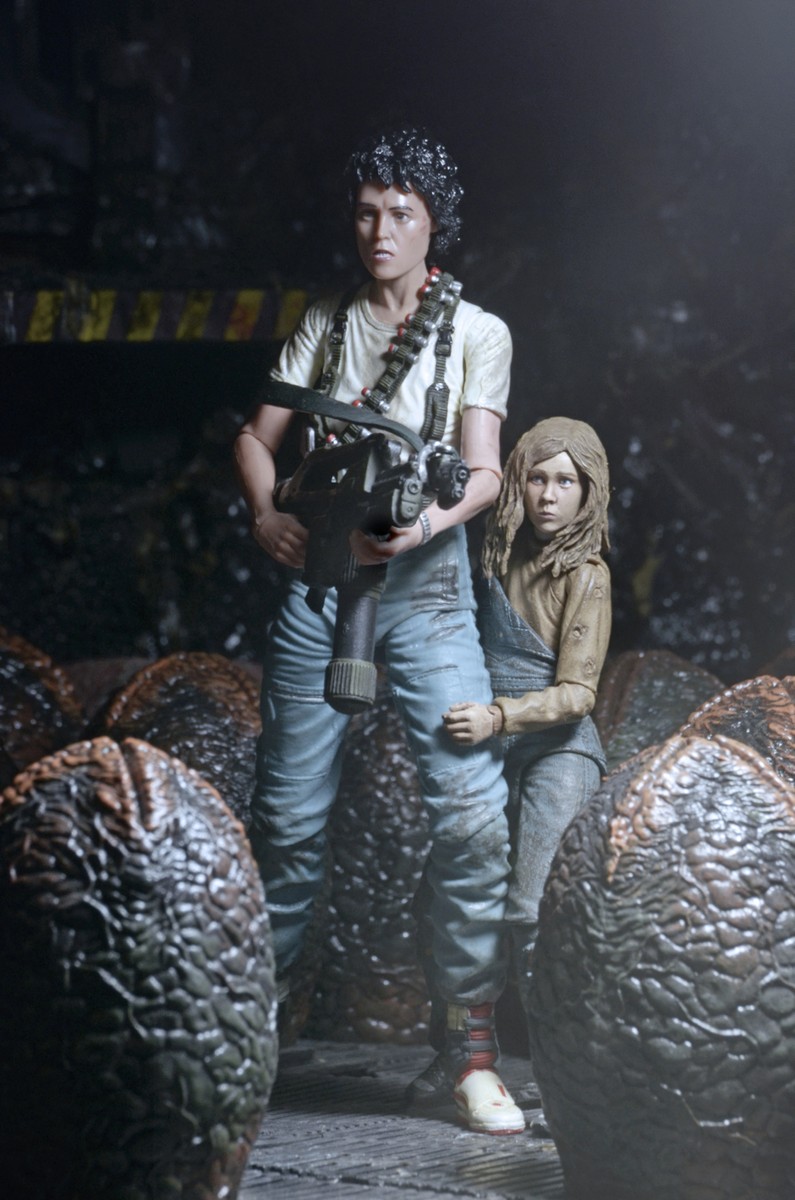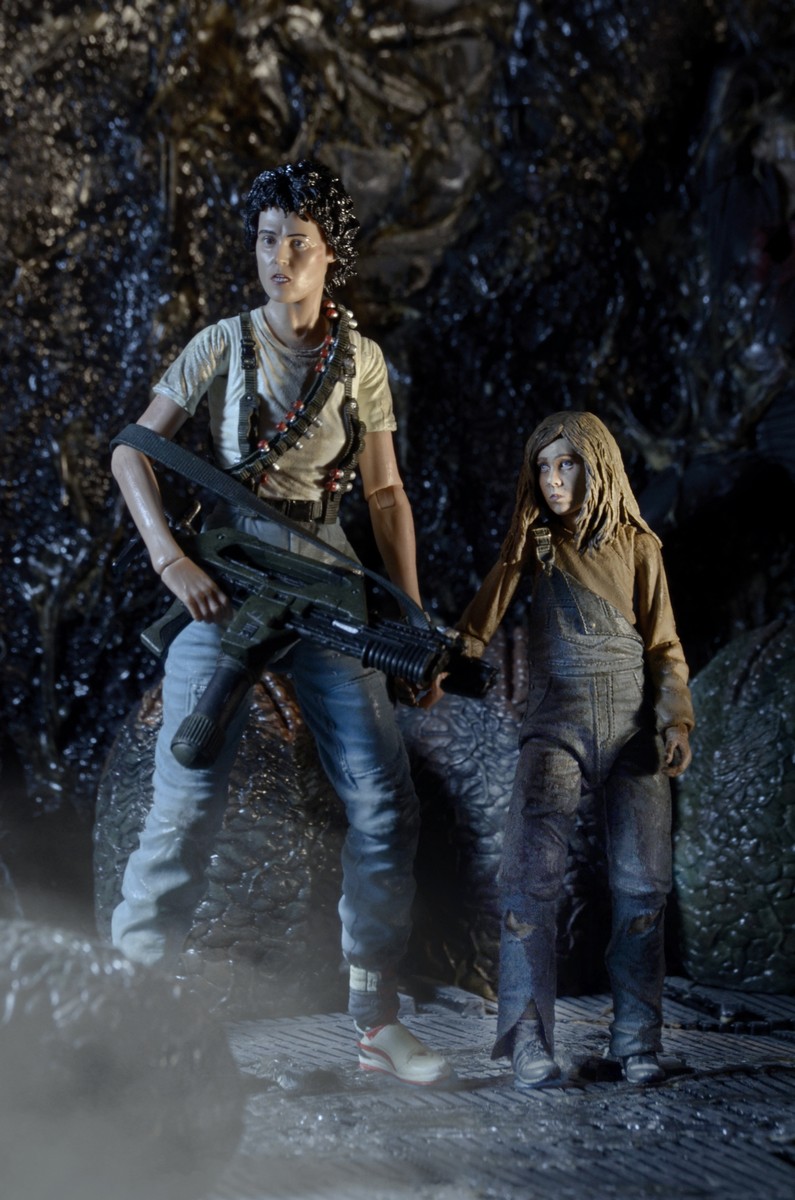 Ripley stands approximately 7” tall and features a new head sculpt and new deco, both exclusive to this set. She comes with a flamethrower accessory that has a special “fire effect” attachment. Newt stands approximately 5” tall. Both feature authorized likenesses and have over 25 points of articulation for dramatic poses. A great display piece both in and out of the box!