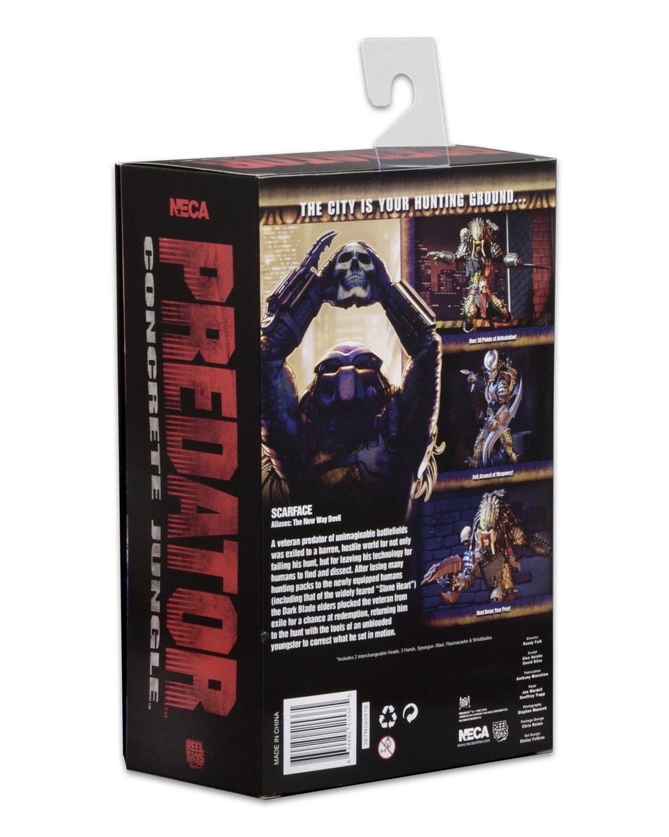 Surviving over a century of forced exile on a harsh planet earned the disgraced Predator a chance to redeem himself. Now he’s come to Neonopolis to kill the humans who stole and exploited his technology. This ultimate rendition of Scarface stands over 8″ tall, with over 30 points of articulation for great poses. Scarface is extra-detailed, and comes with two interchangeable head sculpts, plus Spear Gun and Maul accessories. Comes in special window box packaging with opening flap that recreates the look of the original video game box.