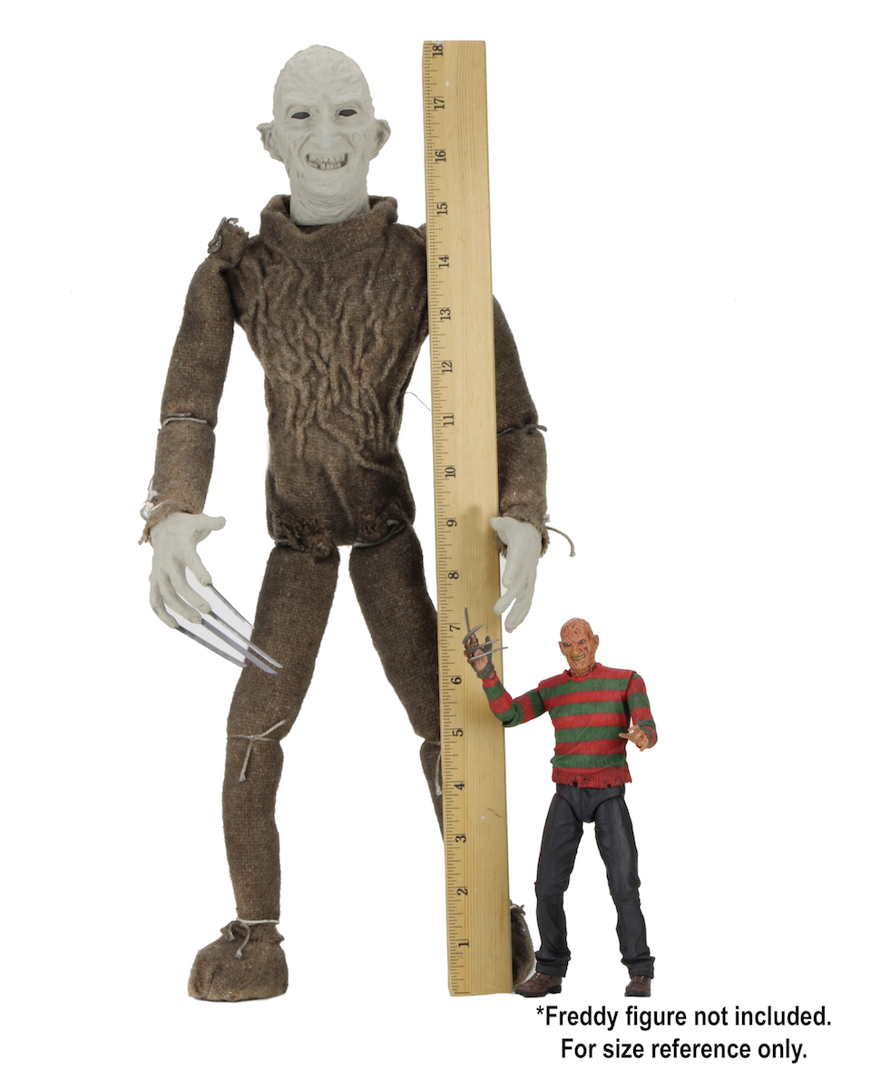 Celebrate the 30th Anniversary of Nightmare on Elm Street Part 3: Dream Warriors with NECA! In the cult horror movie, Freddy enters the dreams of Phillip via one of his marionettes, which transforms into a Freddy puppet and cuts its own strings. This detailed prop replica of the Freddy puppet is 18” tall and was created from original film-used molds for the head and hands. The fabric body was faithfully replicated as well, and can be posed thanks to an inner wire armature. Comes with a display stand.