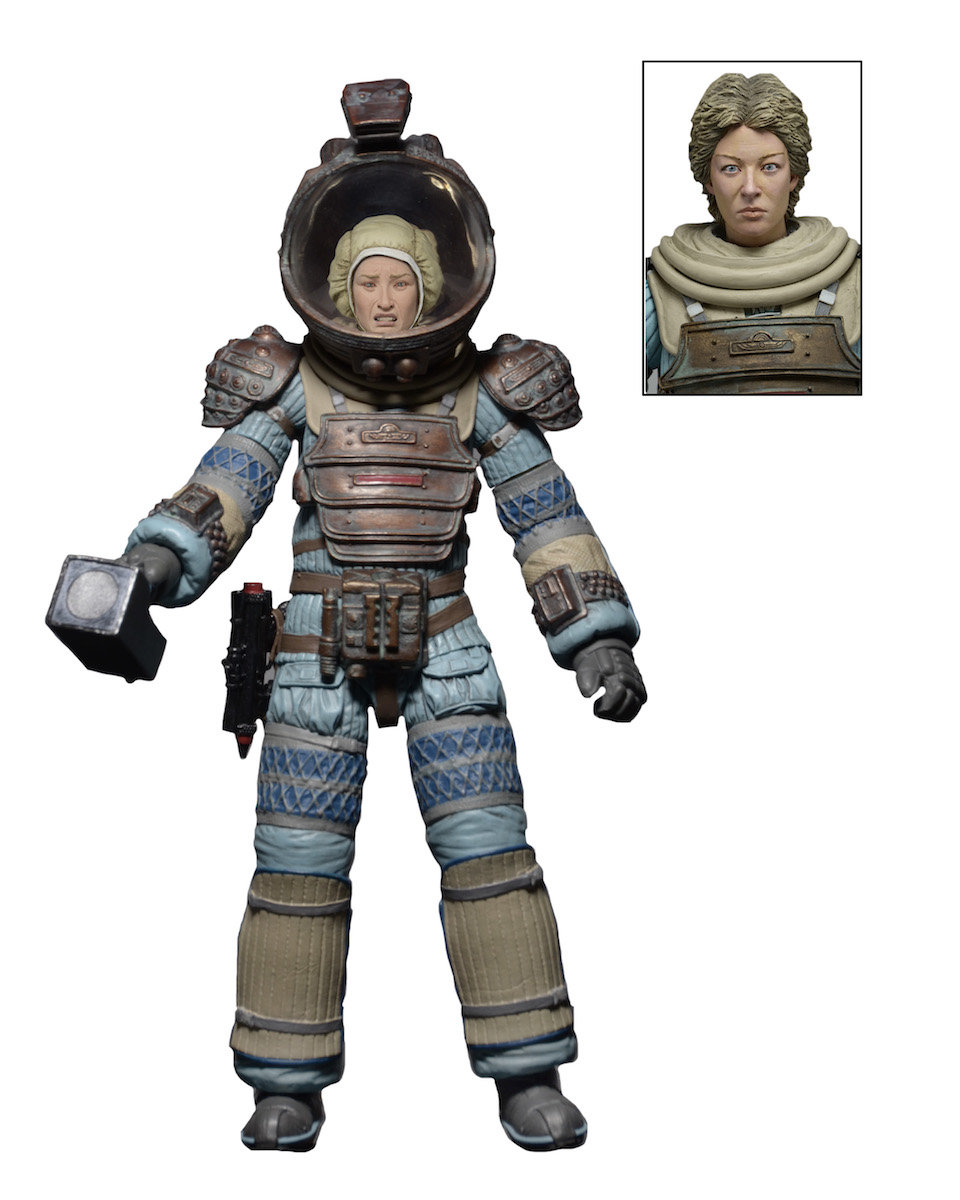 Joan Lambert, navigator of the USCSS Nostromo, stands approximately 7” tall and features the likeness of Veronica Cartwright. She comes with two heads, removable helmet and flashlight accessory. Both Xenomorph action figures stand over 9” tall and feature over 30 points of articulation with bendable tails.