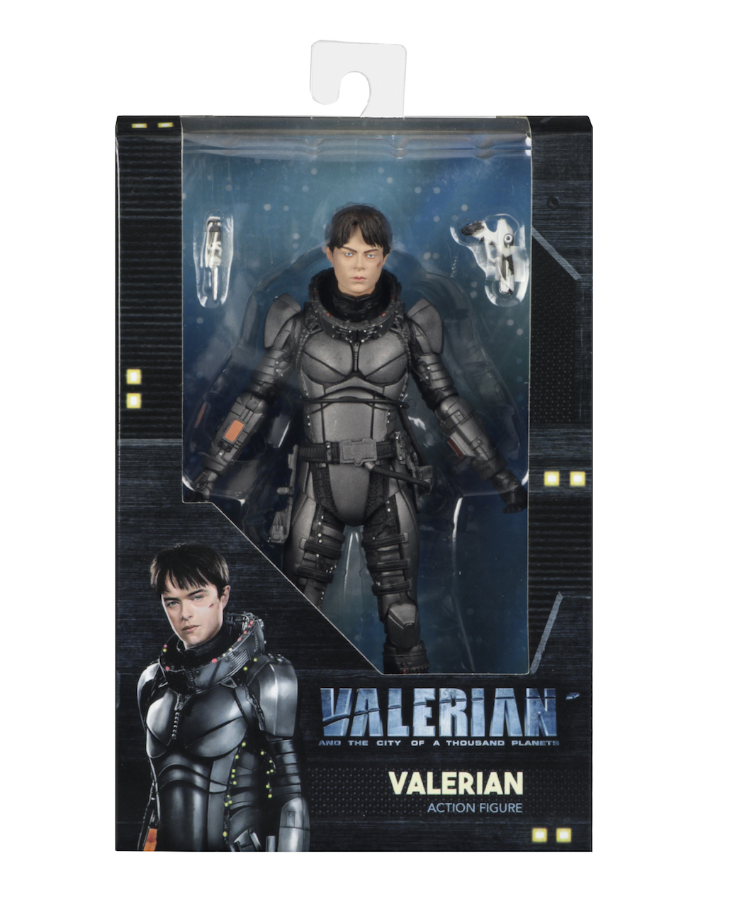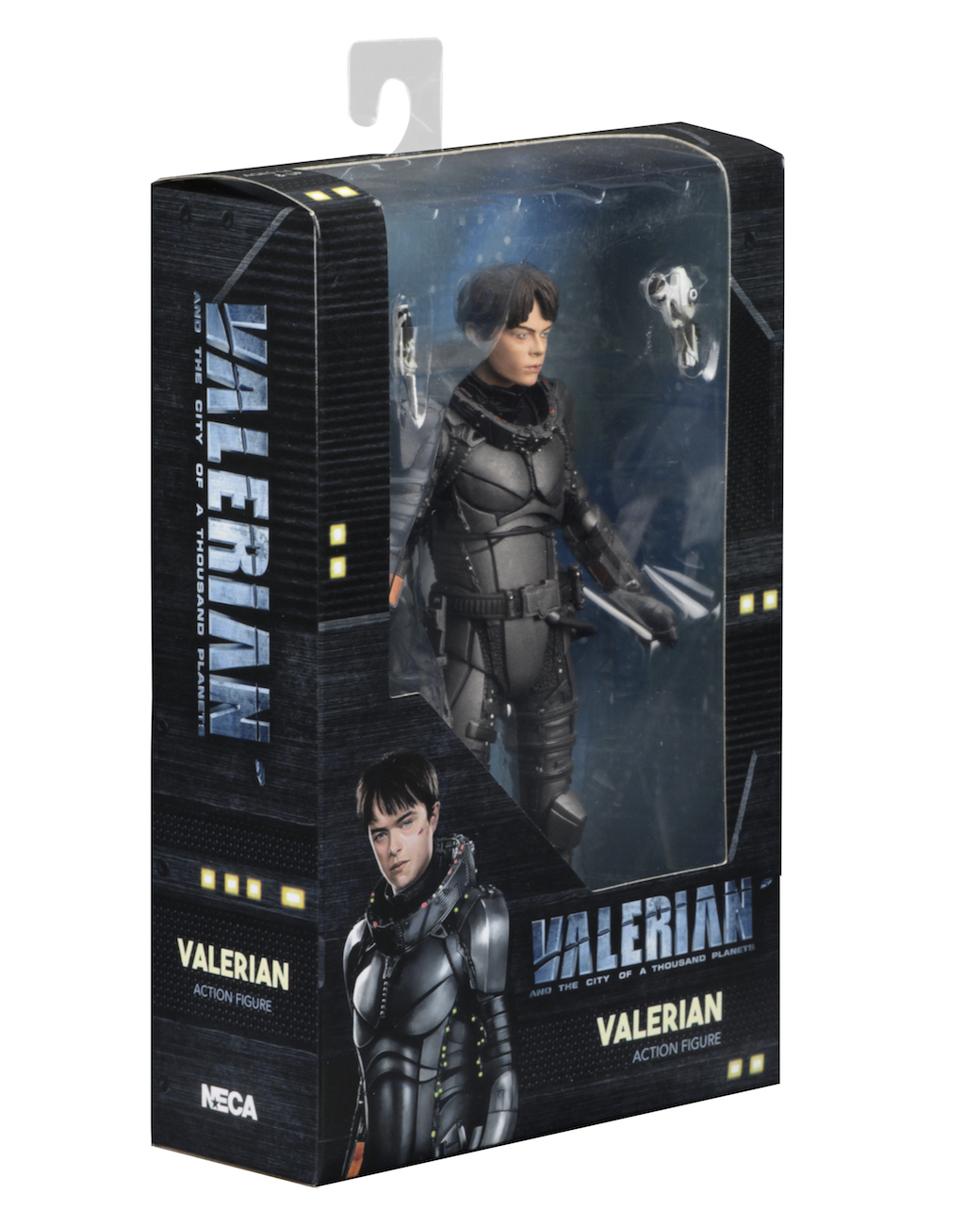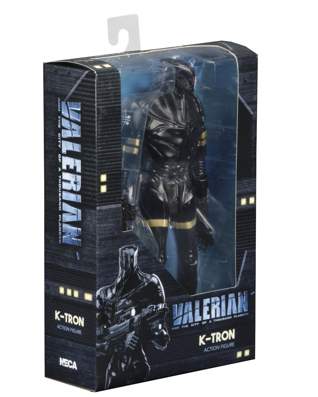 The assortment includes Valerian (with likeness of Dane DeHaan), Laureline (with likeness of Cara Delevigne), and police robot K-Tron. Each fully articulated, highly detailed figure stands approximately 7” tall and comes with character-specific accessories. Window box packaging.