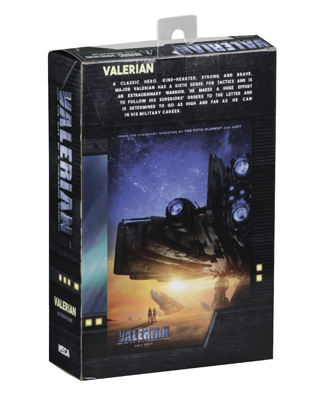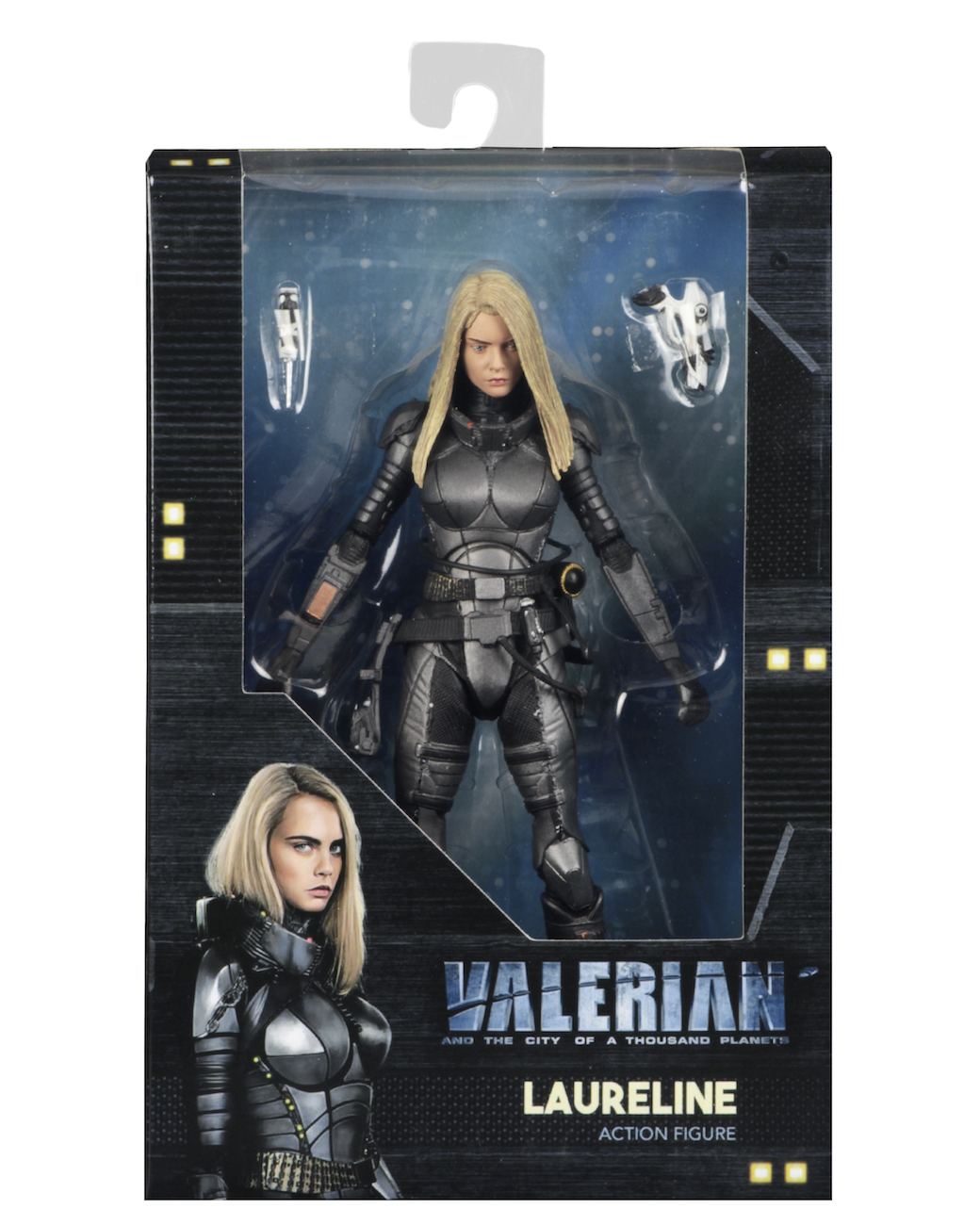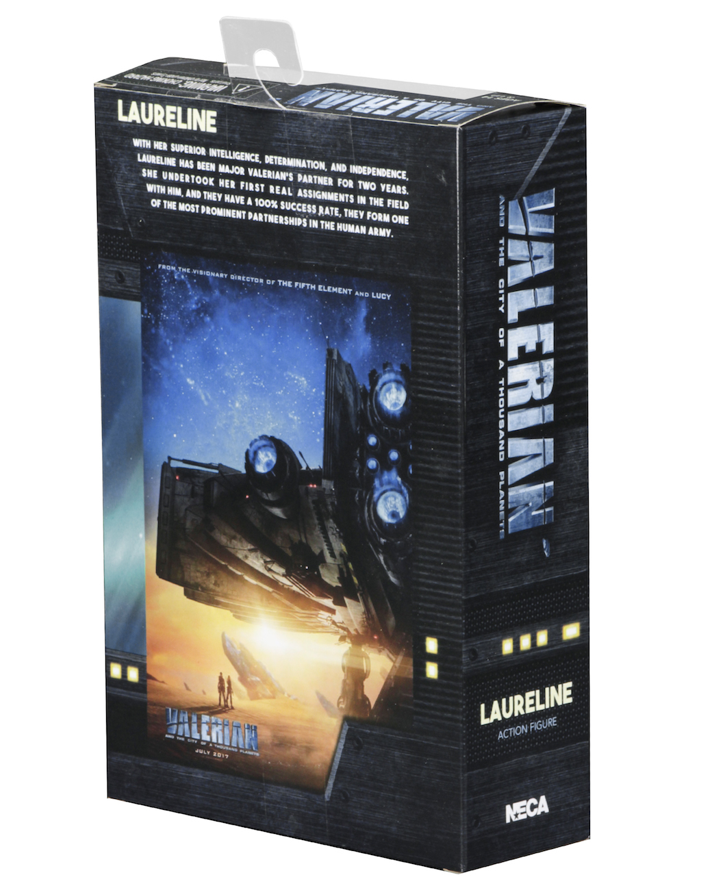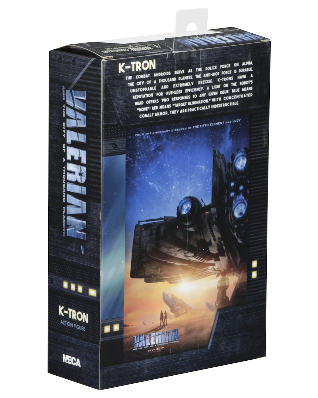 The assortment includes Valerian (with likeness of Dane DeHaan), Laureline (with likeness of Cara Delevigne), and police robot K-Tron. Each fully articulated, highly detailed figure stands approximately 7” tall and comes with character-specific accessories. Window box packaging.