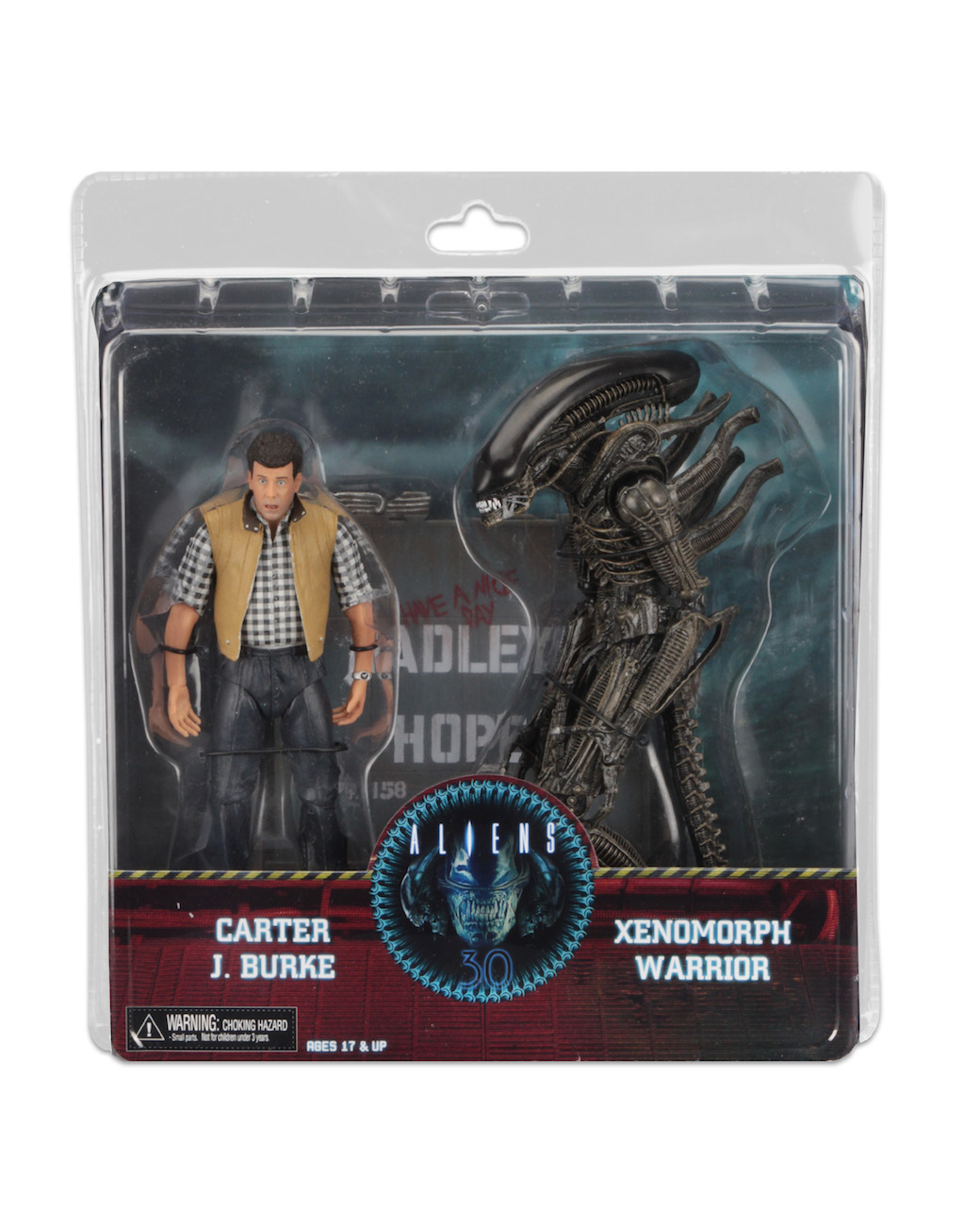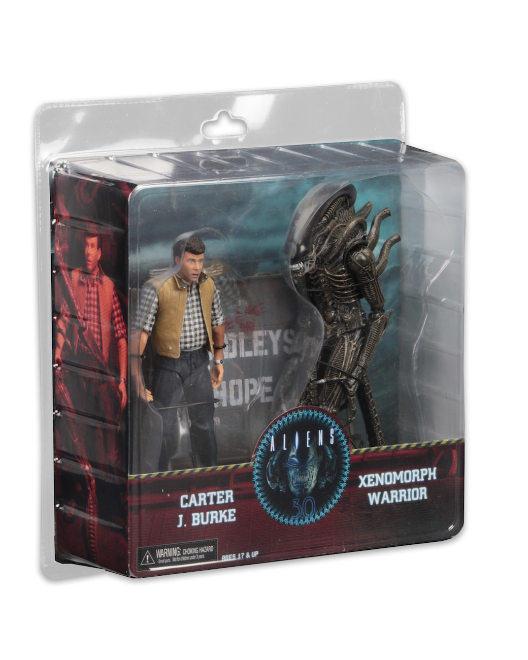 This very special action figure set is themed to the events that occur in Hadley’s Hope during Aliens and continues our 30th Anniversary celebration. The set includes the first-ever Carter Burke with the likeness of Paul Reiser, a special edition Concept Aliens Warrior with Dome, and a replica of the population sign for Hadley’s Hope.