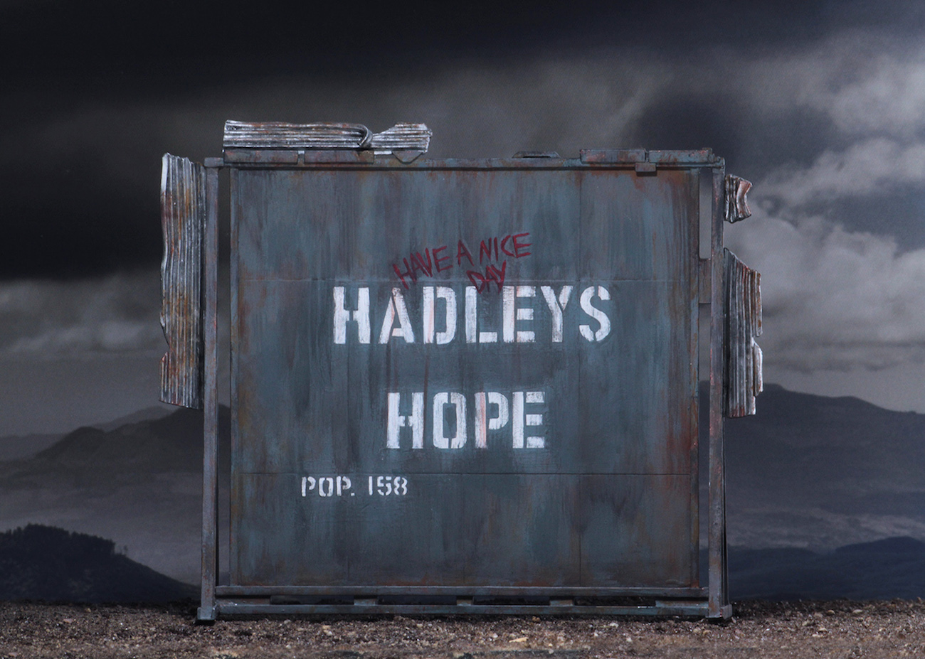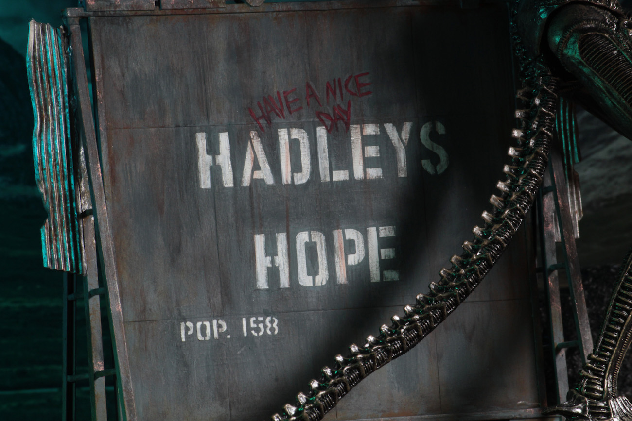 The Hadley’s Hope population sign measures approximately 6 x 6 inches and will make a perfect diorama element. Clamshell packaging.