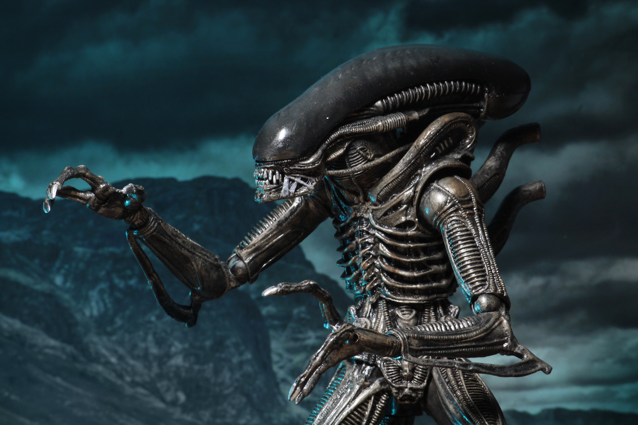 The Concept Warrior is based on James Cameron’s original concept for the Alien, which he envisioned with a semi-transparent dome and in a darker color scheme. (This was changed early in production.) It utilizes the new “Ultimate” Alien body, which has many upgrades, including added articulation and increased range of motion in upper torso and neck, plus a re-engineered tail assembly which provides an additional swivel as well as having a bendable portion. The figure stands over 9” tall and has over 30 points of articulation.