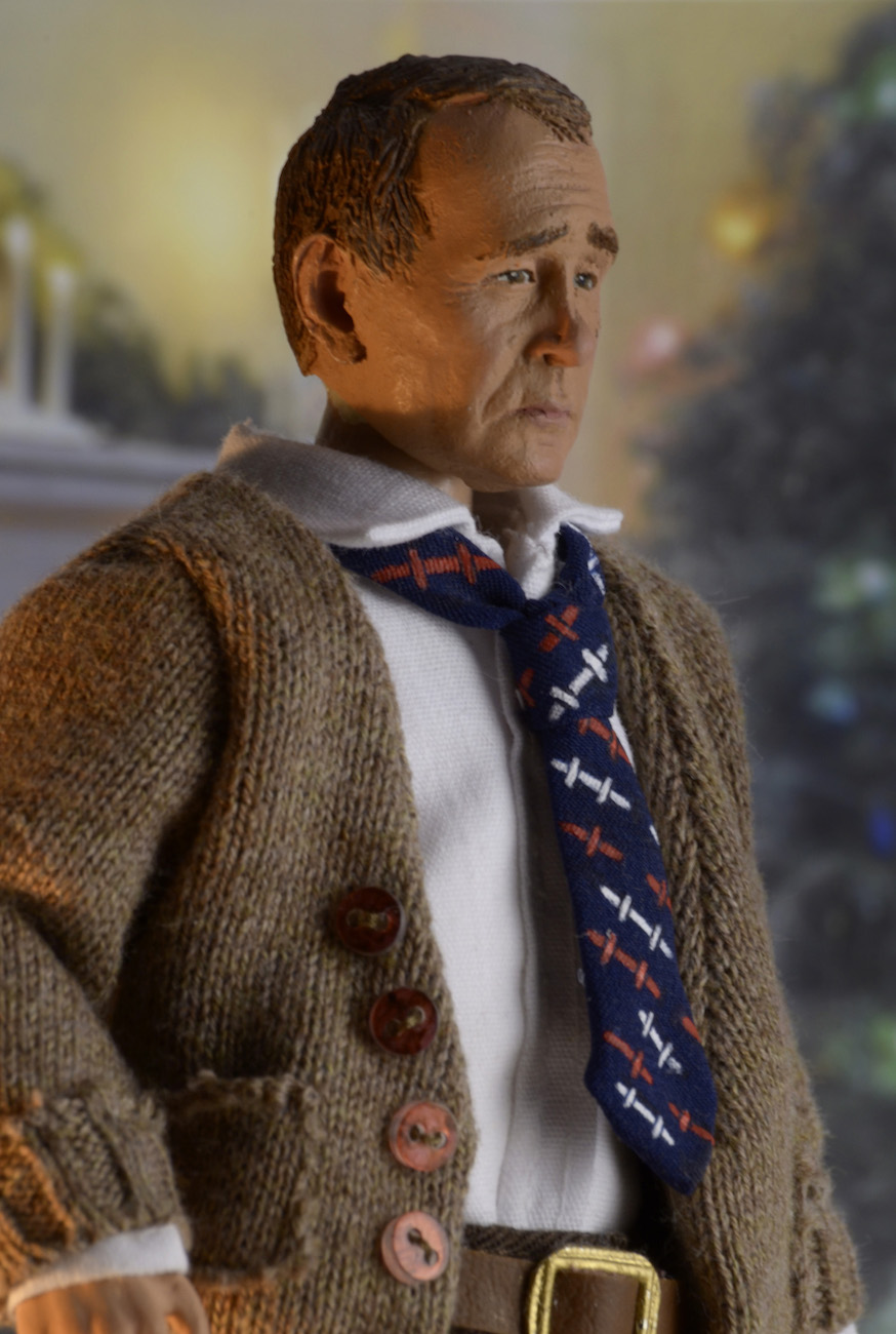 Ralphie’s dad, lovingly referred to as the “Old Man,” stands 8” tall, has fabric clothing, and is fully articulated. The figure comes with plenty of accessories for extra holiday fun: two interchangeable heads, Leg Lamp (it’s a Major Award), and more!