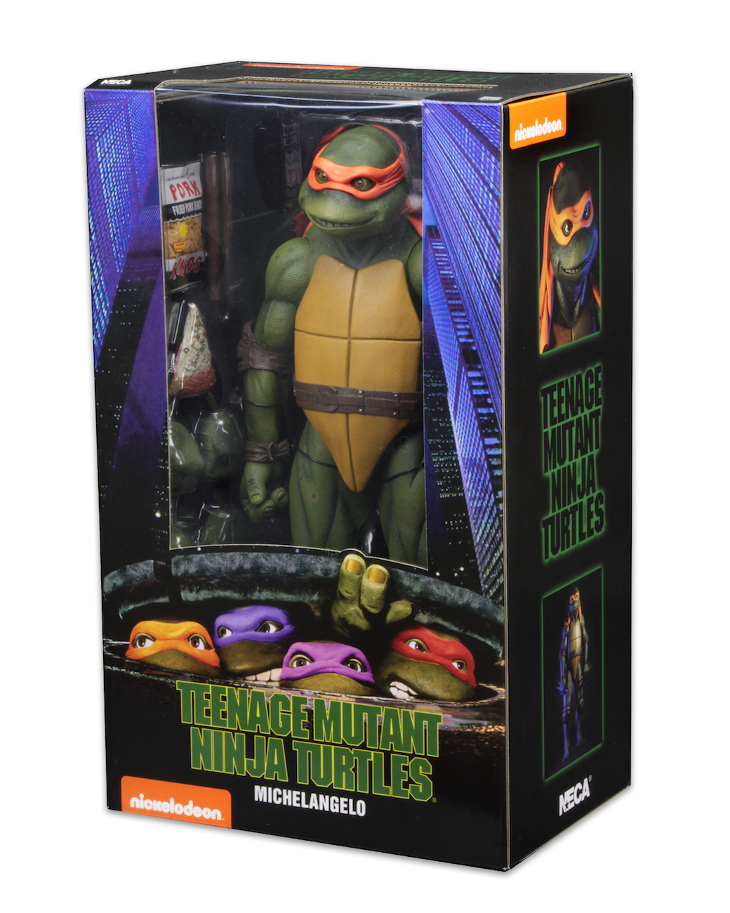 Radical, dudes! Completing the team, NECA’s fourth 1/4 scale action figure from the 1990 Teenage Mutant Ninja Turtles movie is the easy-going Michelangelo. No one loves being a Turtle (or pizza) more than this guy!