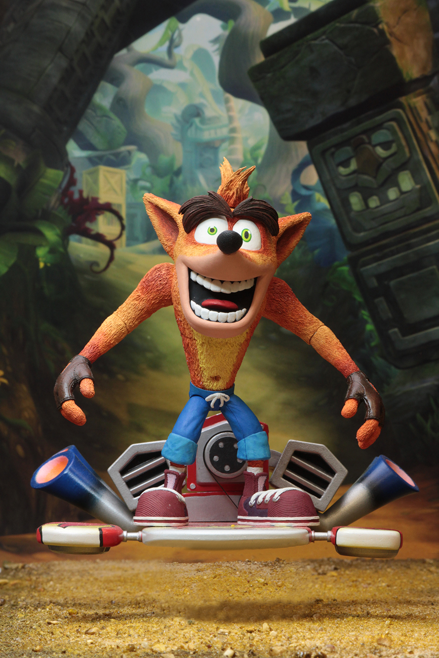 NECA’s second release in the eagerly anticipated line of Crash Bandicoot action figures is a deluxe Crash with his massive hot rod hoverboard!